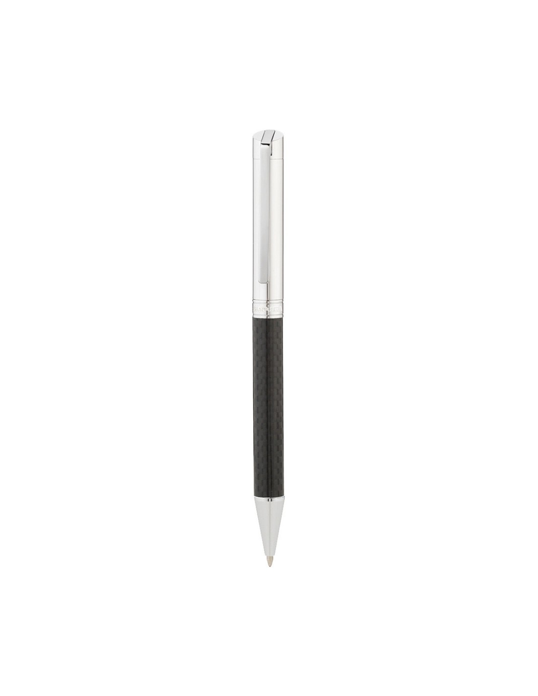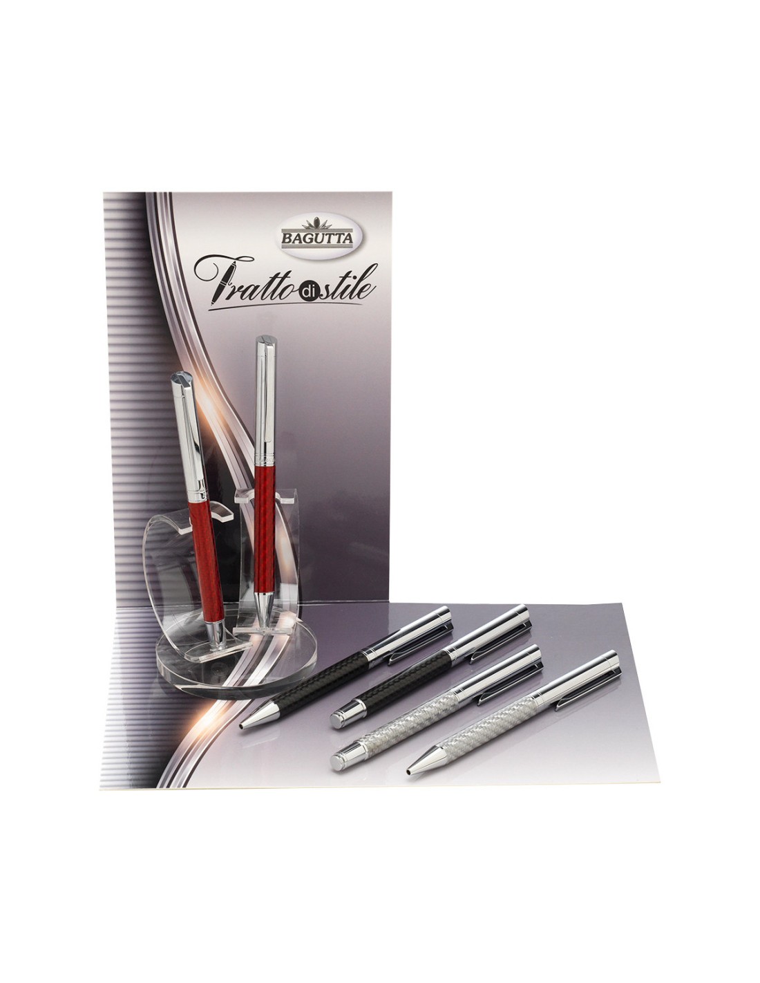 Bolígrafo de metal con detalle en negro marca Deam modelo Bagutta Tratto di Stile referencia BH6021-01B. Largo 15 cm. Sistema de giro. Con espacio para grabar. Se incluye estuche y bolsa oficial.