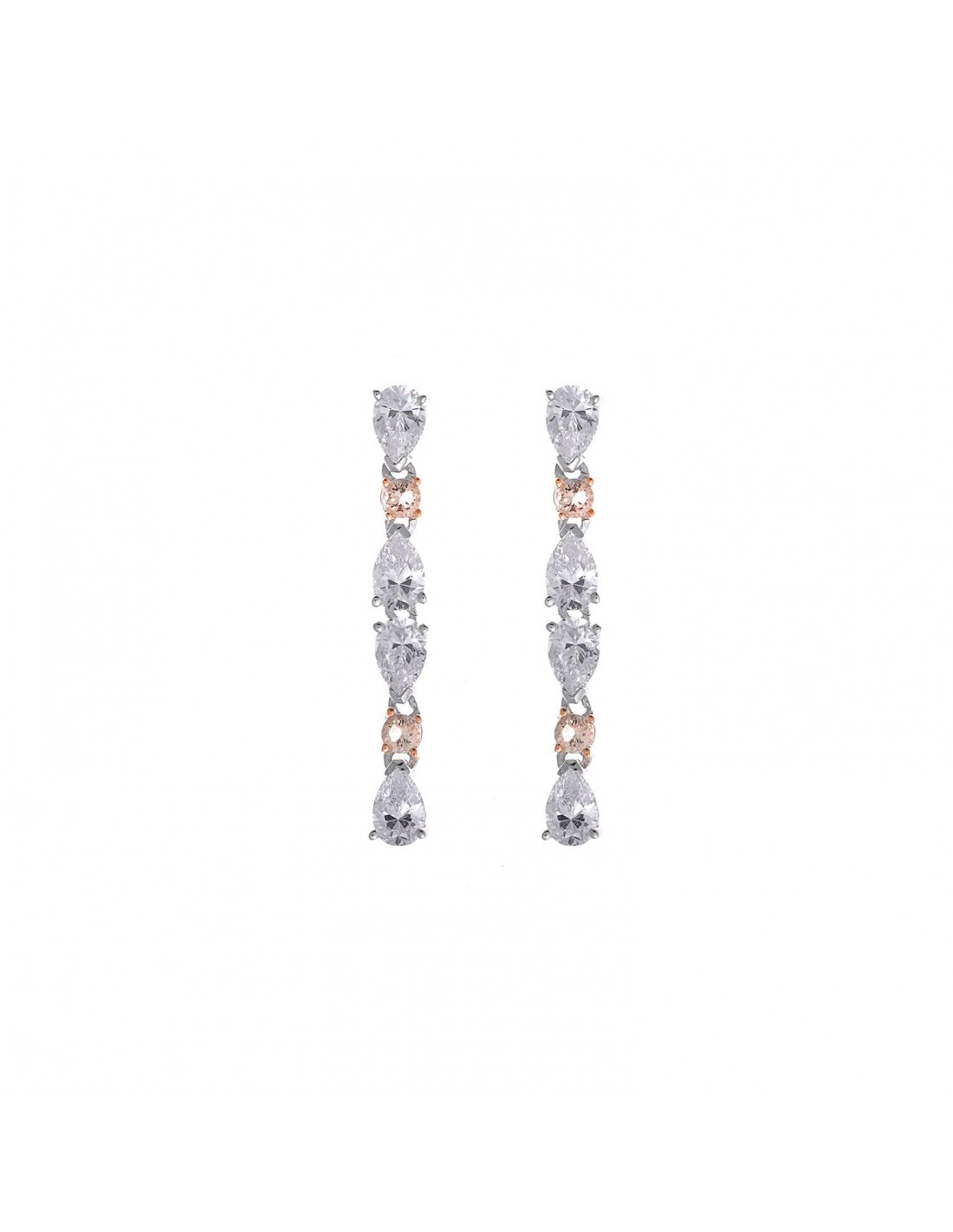 Pendientes elaborados en Plata de Ley 925 rodiada con circonitas blancas y cristal blanco.