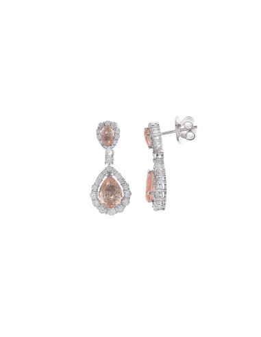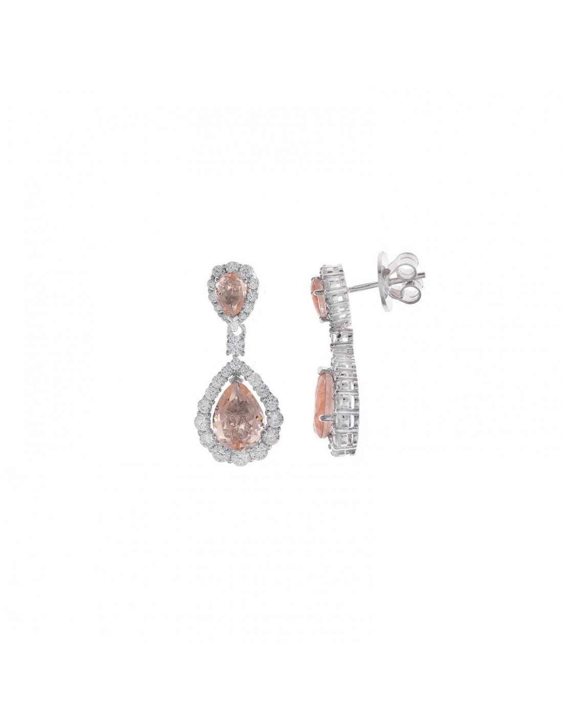 Pendientes de mujer de plata marca Salvatore Plata ideales para novia. Fabricados en Plata de Ley 925 con circonitas blancas y cristal morganita. Tienen un largo de 28mm. Cierre tipo palillo tuerca a presión. PENDIENTES SALVATORE.