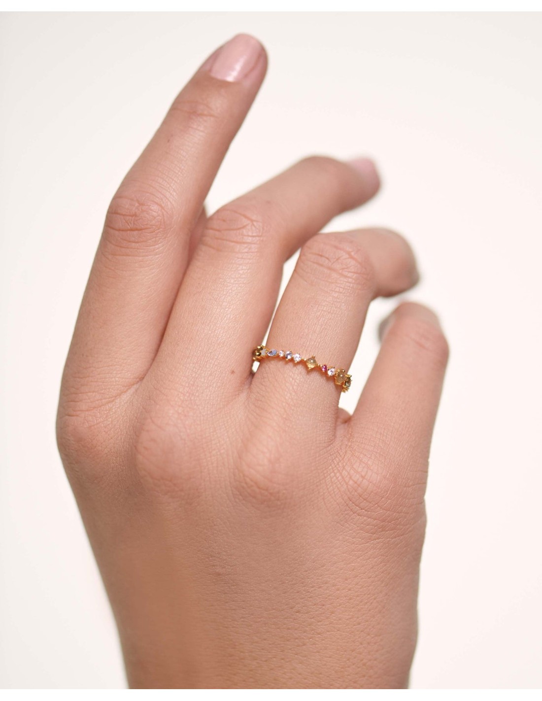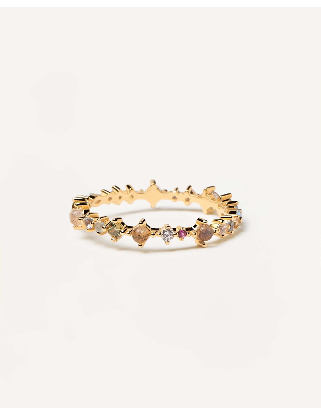 Anillo para mujer fabricado en plata 925 bañado en Oro 18k con gemas multicolores. Talla 12. Referencia AN01-191.Colección Atelier. Se incluye estuche y certificado oficial PDPaola.