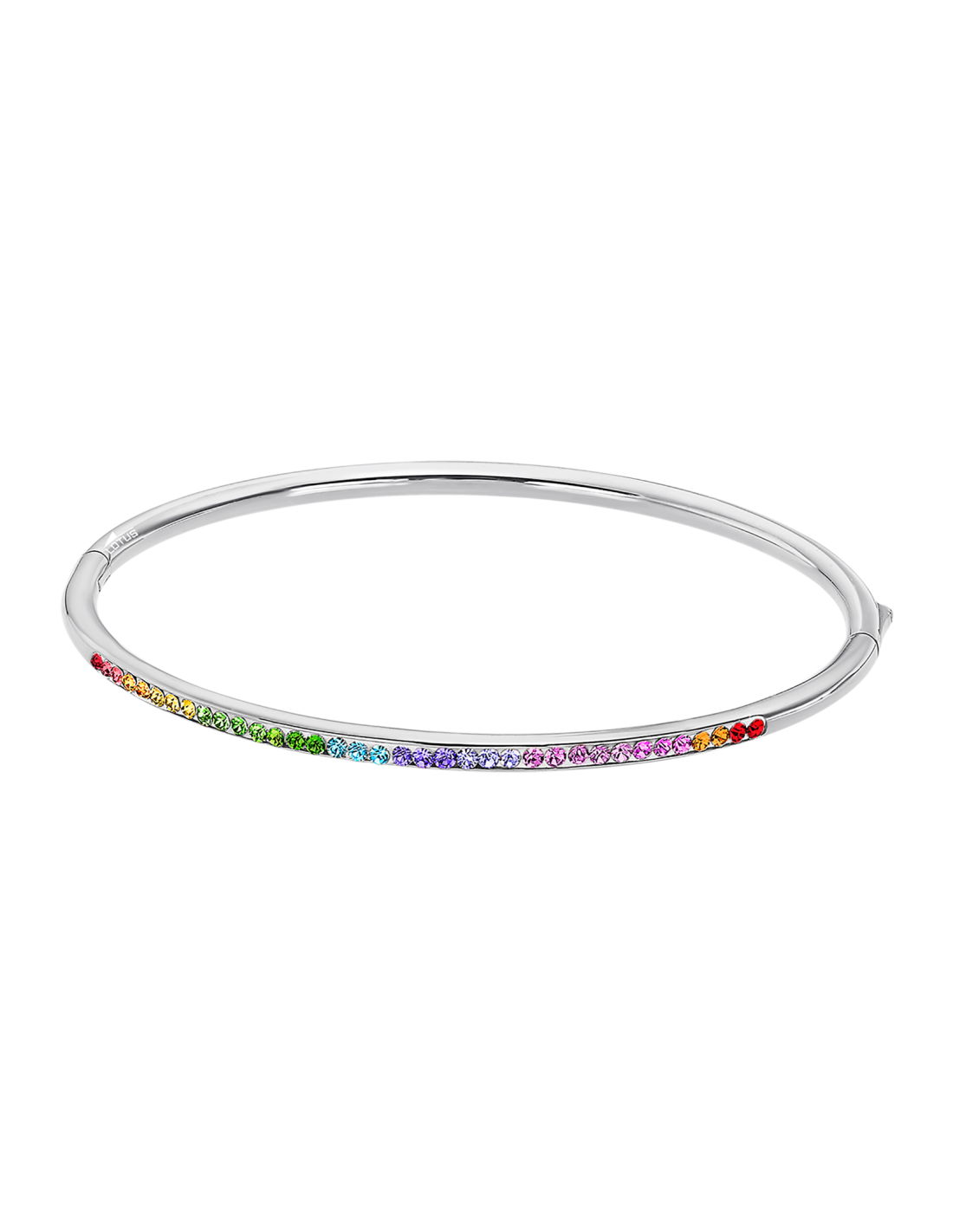 Pulsera fabricada en acero inoxidable color plateado con circonitas de colores.