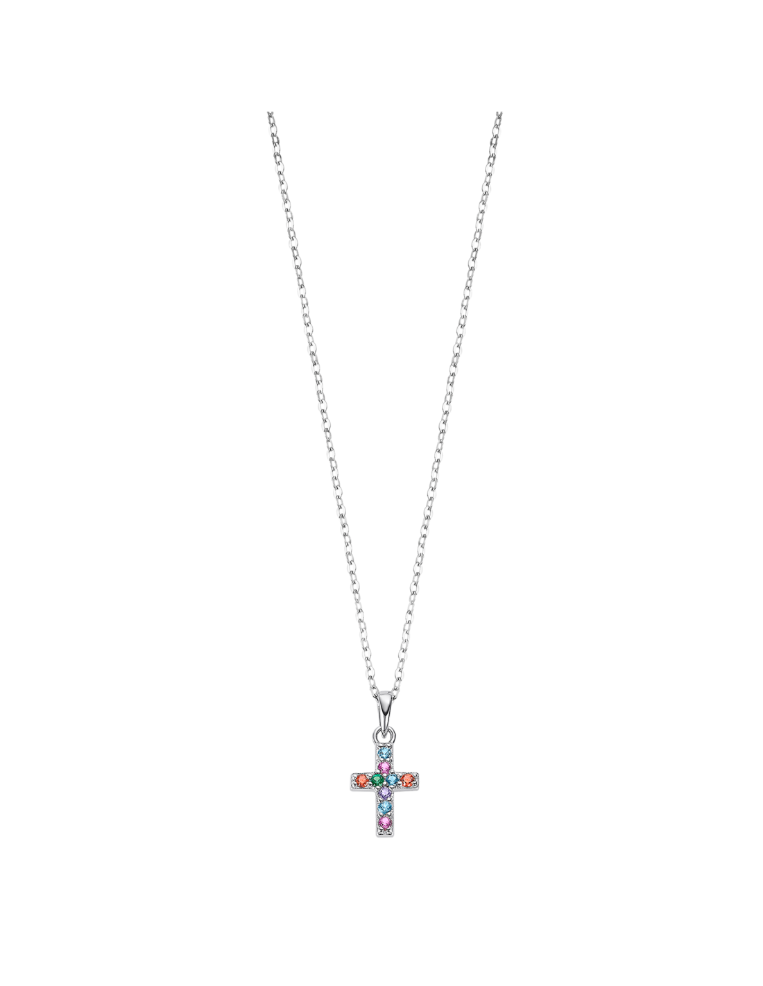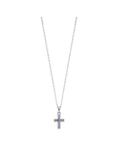 Collar de mujer con cruz con circonitas de colores fabricado en plata 925. Colección It Girl.