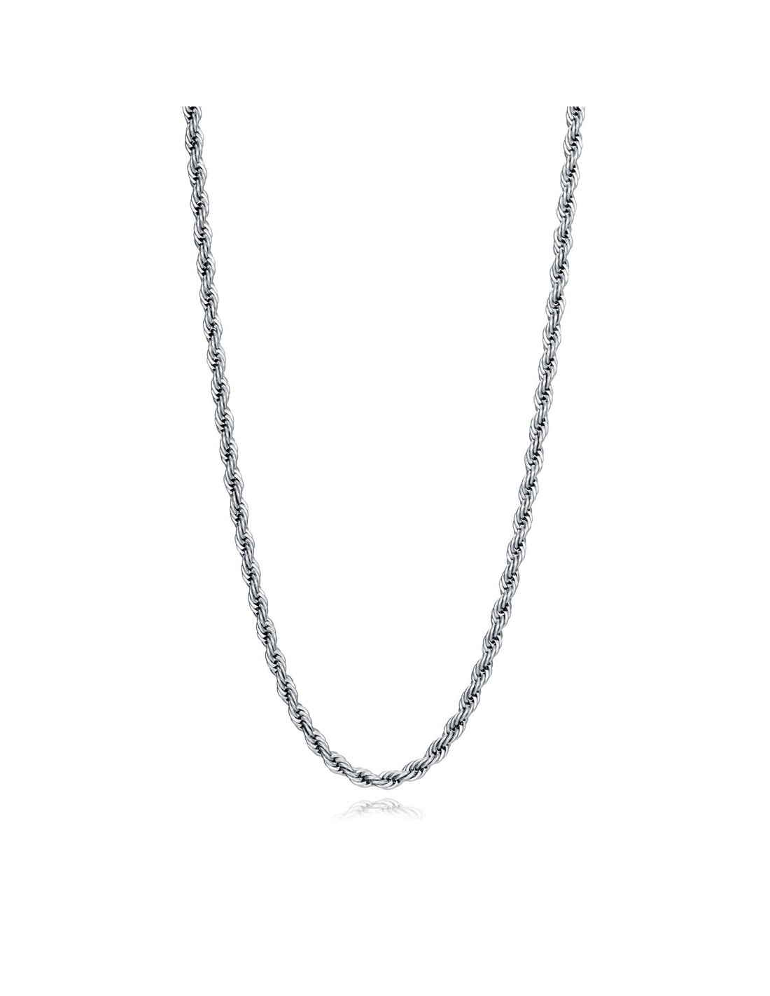 Collar fabricado en acero inoxidable color plateado tipo cordón.