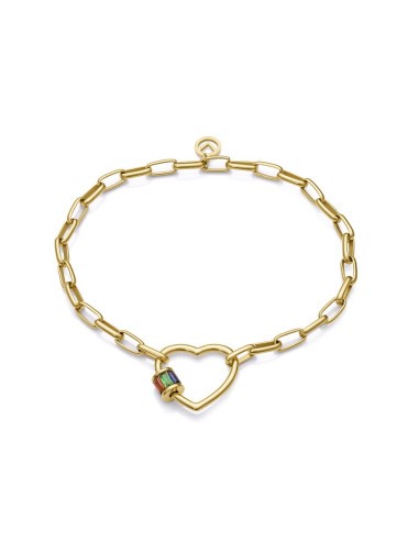 Pulsera fabricada en acero inoxidable ip dorado con cierre en forma de corazón.