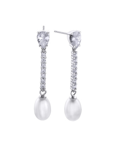 Pendientes para mujer fabricados en plata 925 marca Duran Exquse. Se trata de unos pendientes largos con circonitas y perla blanca cultivada de la colección Sposata referencia 00511516.