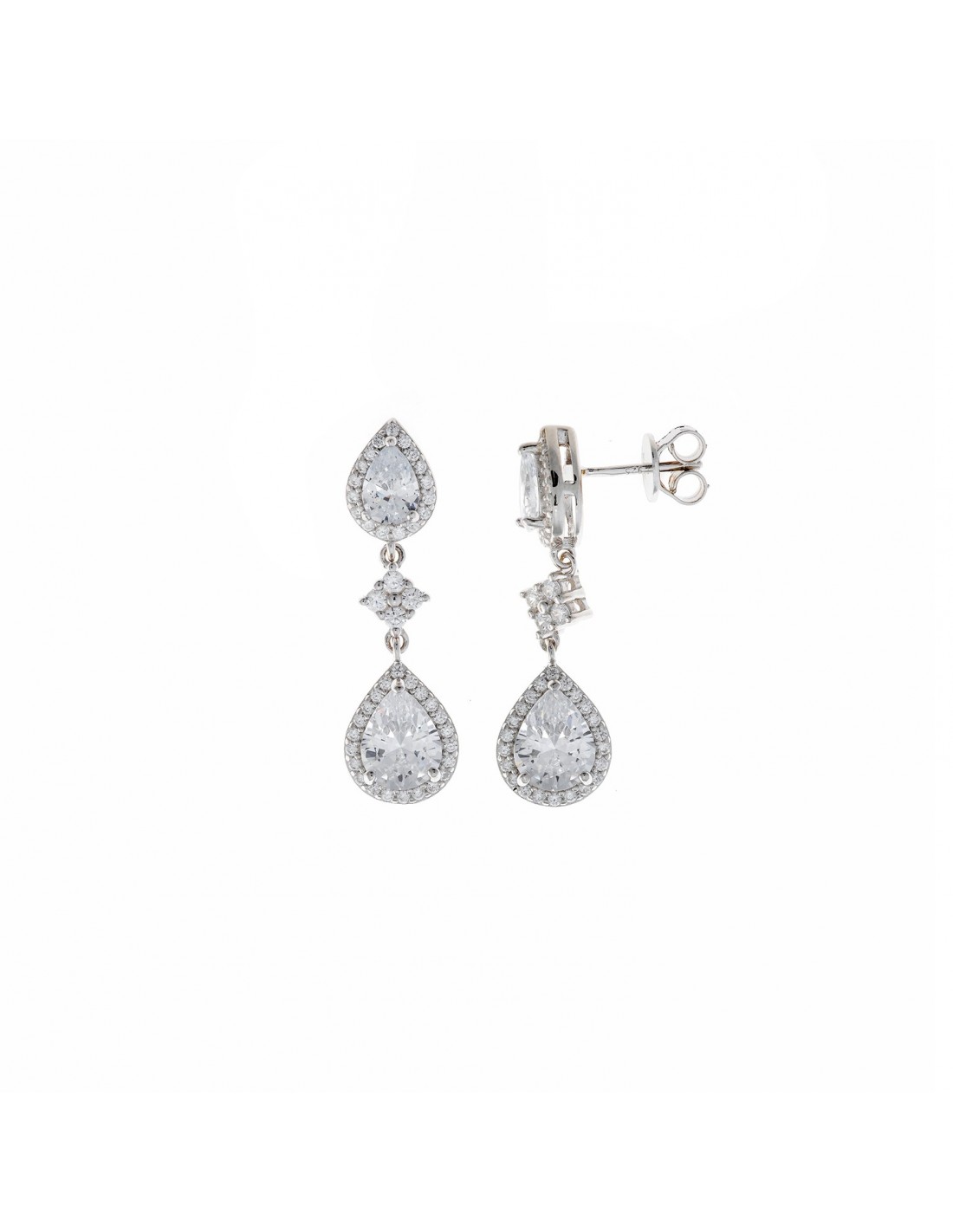 Pendientes elaborados en Plata de Ley 925 rodiada con circonitas blancas y cristal blanco.