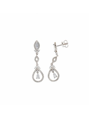 Pendientes de mujer de plata marca Salvatore Plata ideales para novia. Tienen un largo total de 38mm. Pendientes con circonitas blancas y cierre tipo palillo tuerca a presión. Se incluye estuche oficial Salvatore Plata. PENDIENTES SALVATORE.