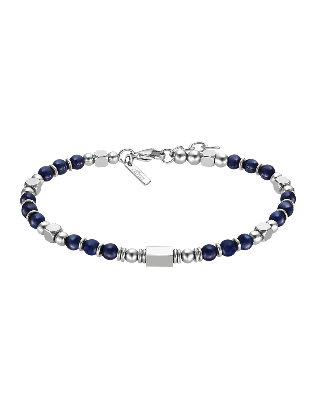 Pulsera fabricada en acero inoxidable con bolas de material color azul. Colección Urban Man.