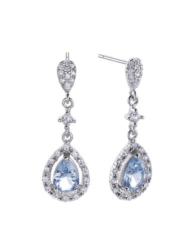 Pendientes de mujer fabricados en plata 925 con gotas de circonitas y detalle de circonita azul. Ideales para novia.