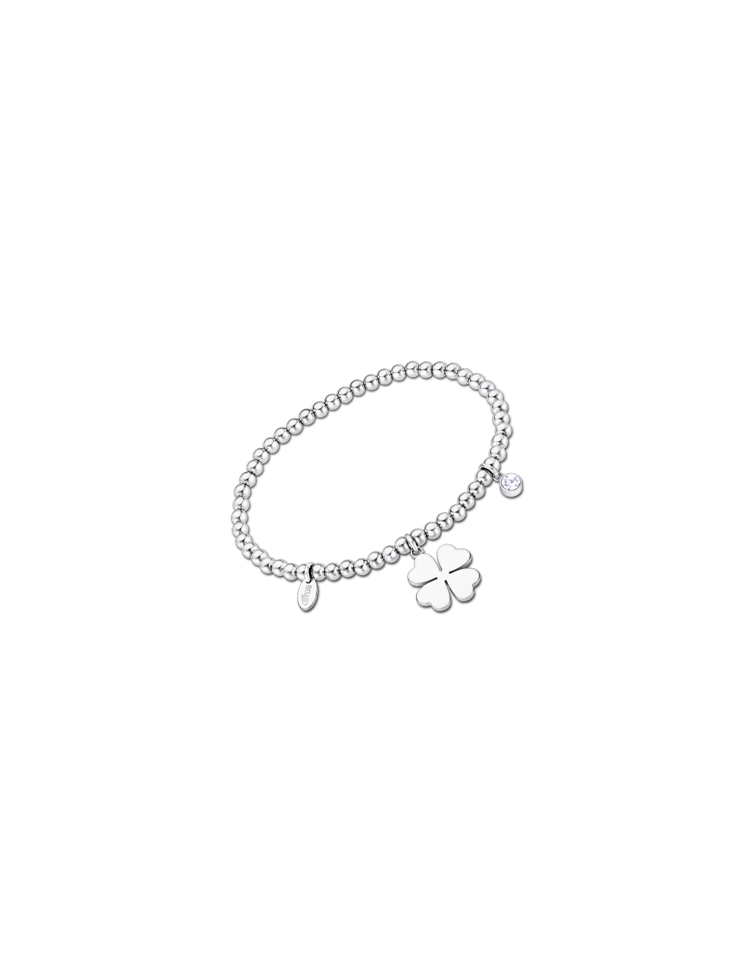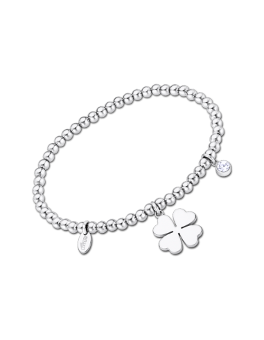 PULSERA LOTUS STYLE MUJER fabricada en acero de bolitas con detalle de trébol y circonita. Ref. LS2170-2/1 colección Millenial. Pulsera elástica de unos 6 cm de diámetro. Se incluye estuche oficial Lotus Style.