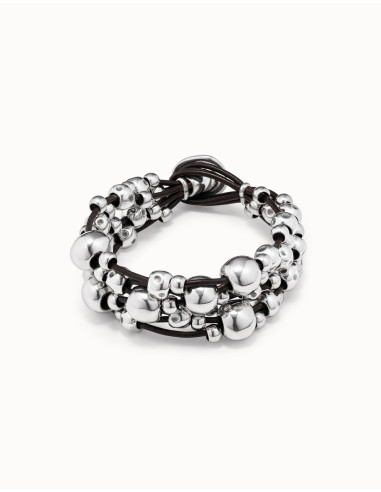 Pulsera MULTIVITAMINAS de mujer elaborada en metal bañado en plata con cuero marca UNO de 50 ref. PUL1861MTLMAR. Colección My Energy. Talla M. Está elaborada en España utilizando técnicas artesanales, con una aleación de metales y cuero. Se incluye bolsa oficial Uno de 50.
