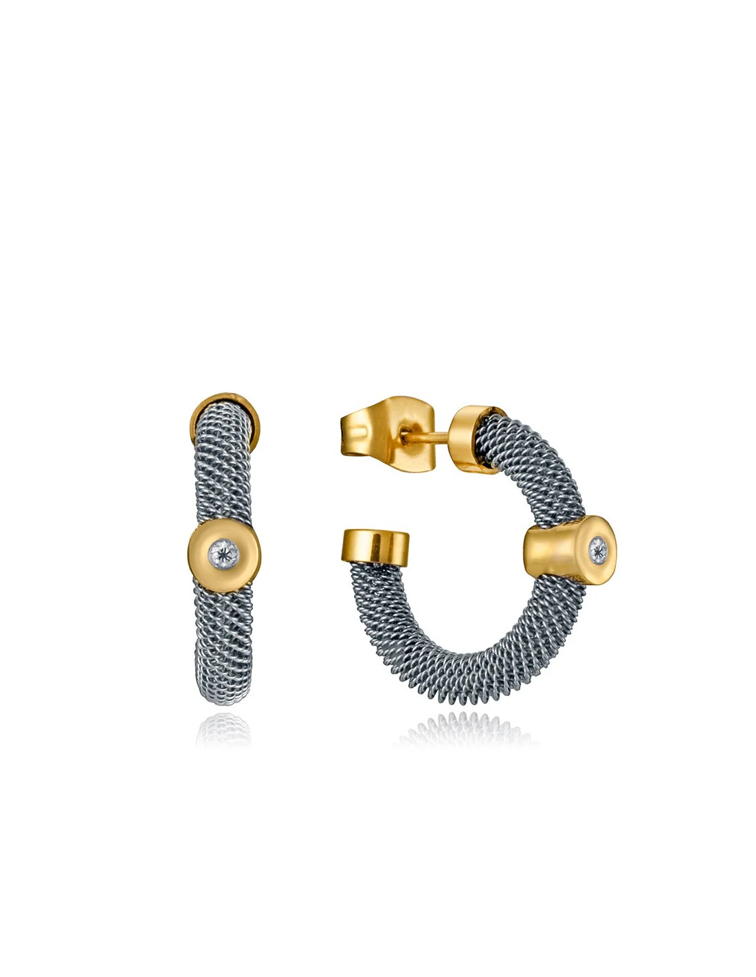 Pendientes fabricados en acero con diamantes de 1PT. Pendientes bicolor plateado y dorado.