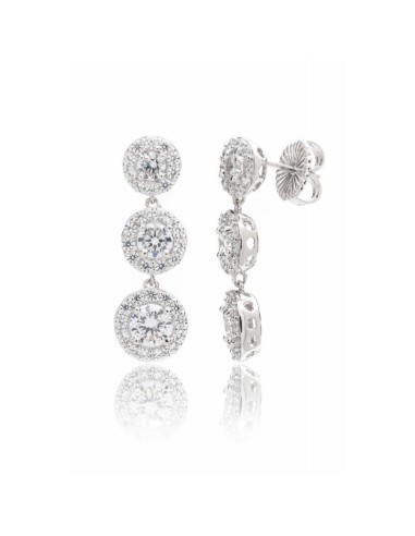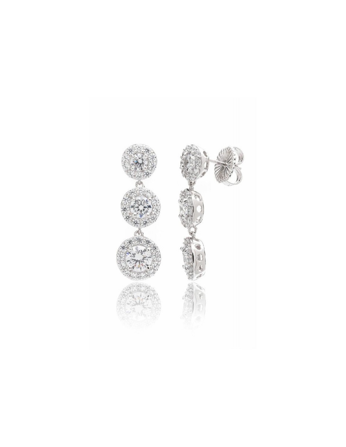 Pendientes de mujer fabricados en plata 925 marca Camaleoni ref. WP024/LP de la colección White. Ideales para novia. Tienen cierre palillo tuerca a presión y un largo total de 30mm. Se incluye estuche y certificado oficial de la marca.