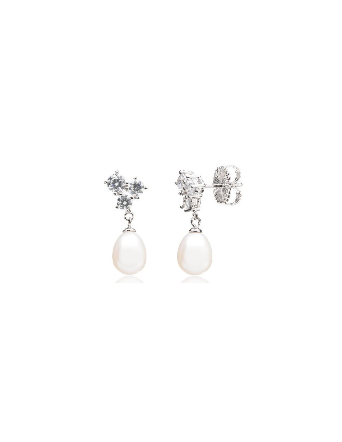Contiene circonitas blancas calidad AAA y perla cultivada. Referencia WPP002/MP. Cierre tuerca a presión. Largo 23mm.