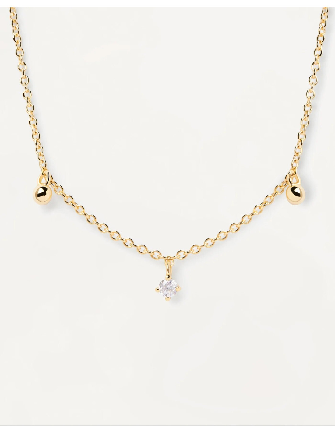 Collar para mujer fabricado en plata 925 bañado en Oro 18k PDPaola. Collar con tres colgantes con una circonita blanca al centro. La cadena tiene un largo ajustable de 40 a 50cm. Se incluye estuche oficial PDPaola. REF CO01-491-U. Colección Básicos.