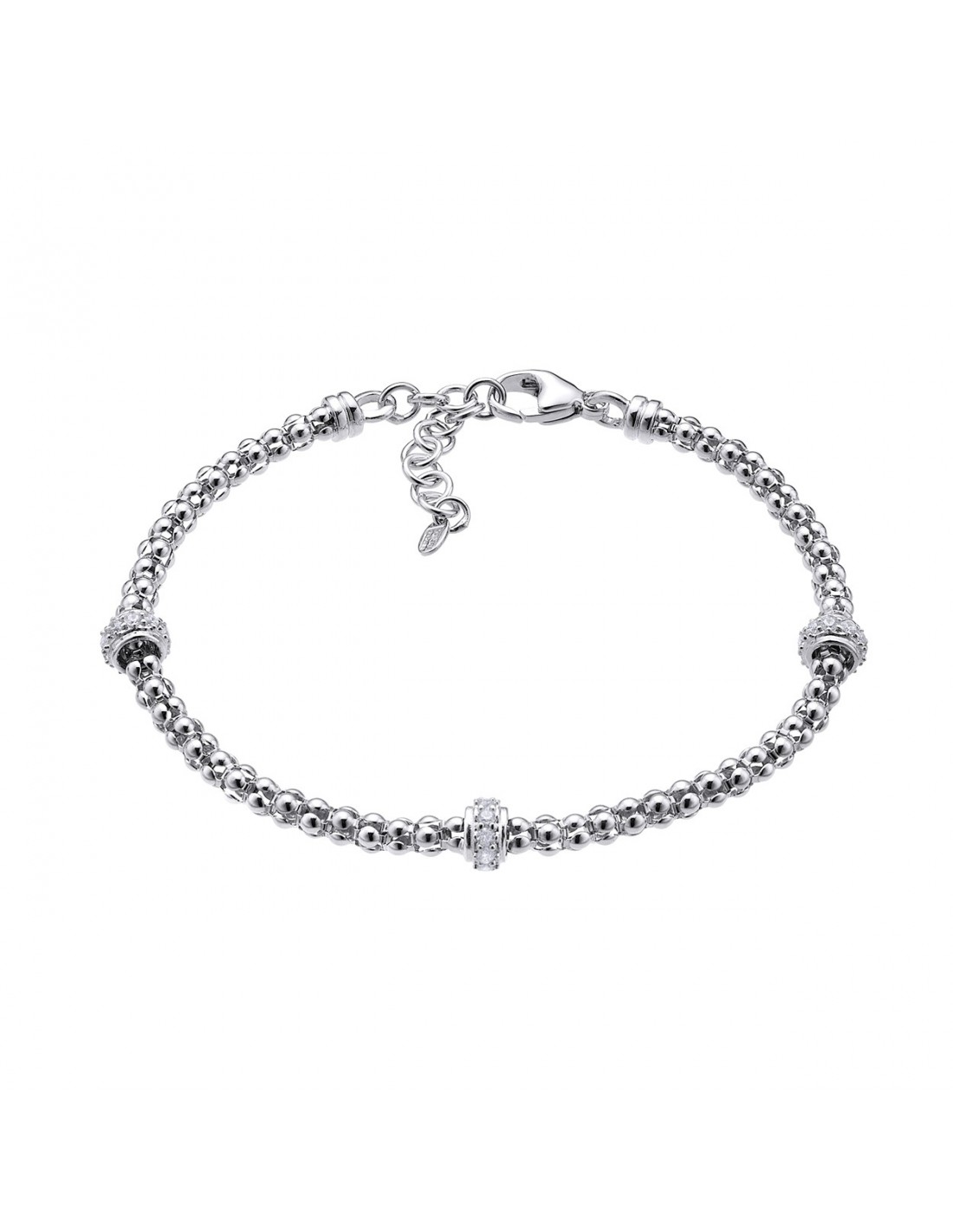 Pulsera de mujer fabricada en plata 925 con detalle de bolas y circonitas blancas.