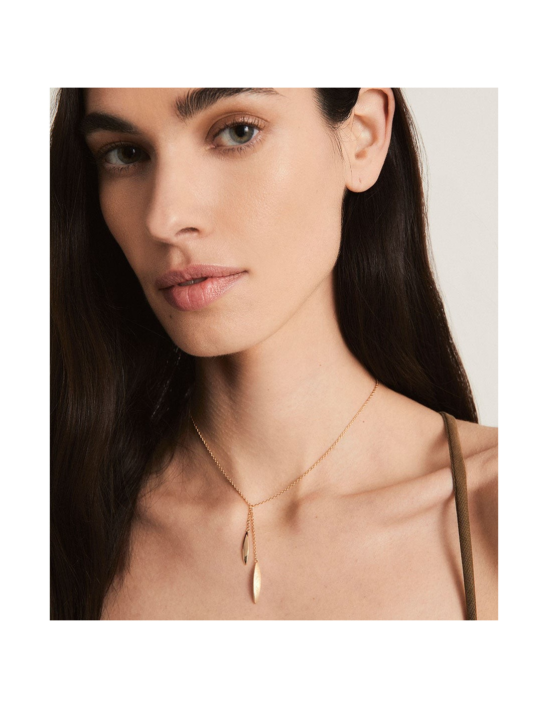 Collar de mujer con colgantes de hojas. Fabricado en metal chapado en oro 18kt.