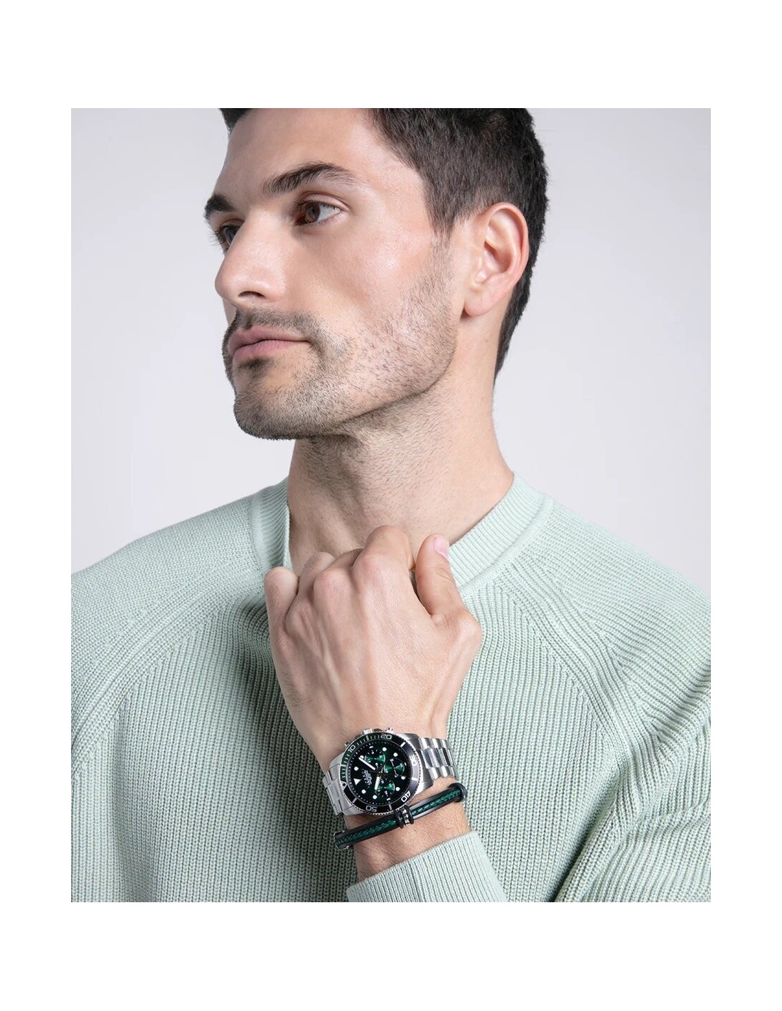 Pulsera de acero con piel color negro y verde ref. 14128P01010 colección Magnum. Largo ajustable de 21,5cm. Cierre tipo broche. Se incluye estuche y garantía oficial Viceroy.