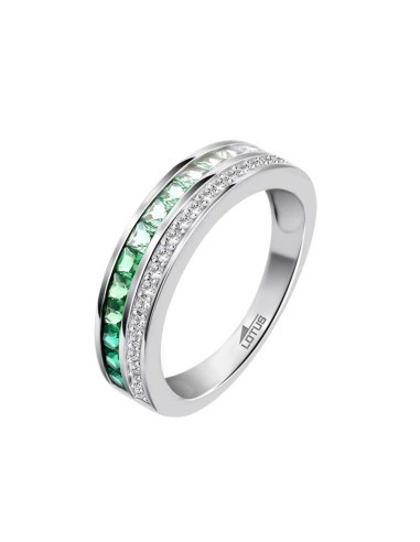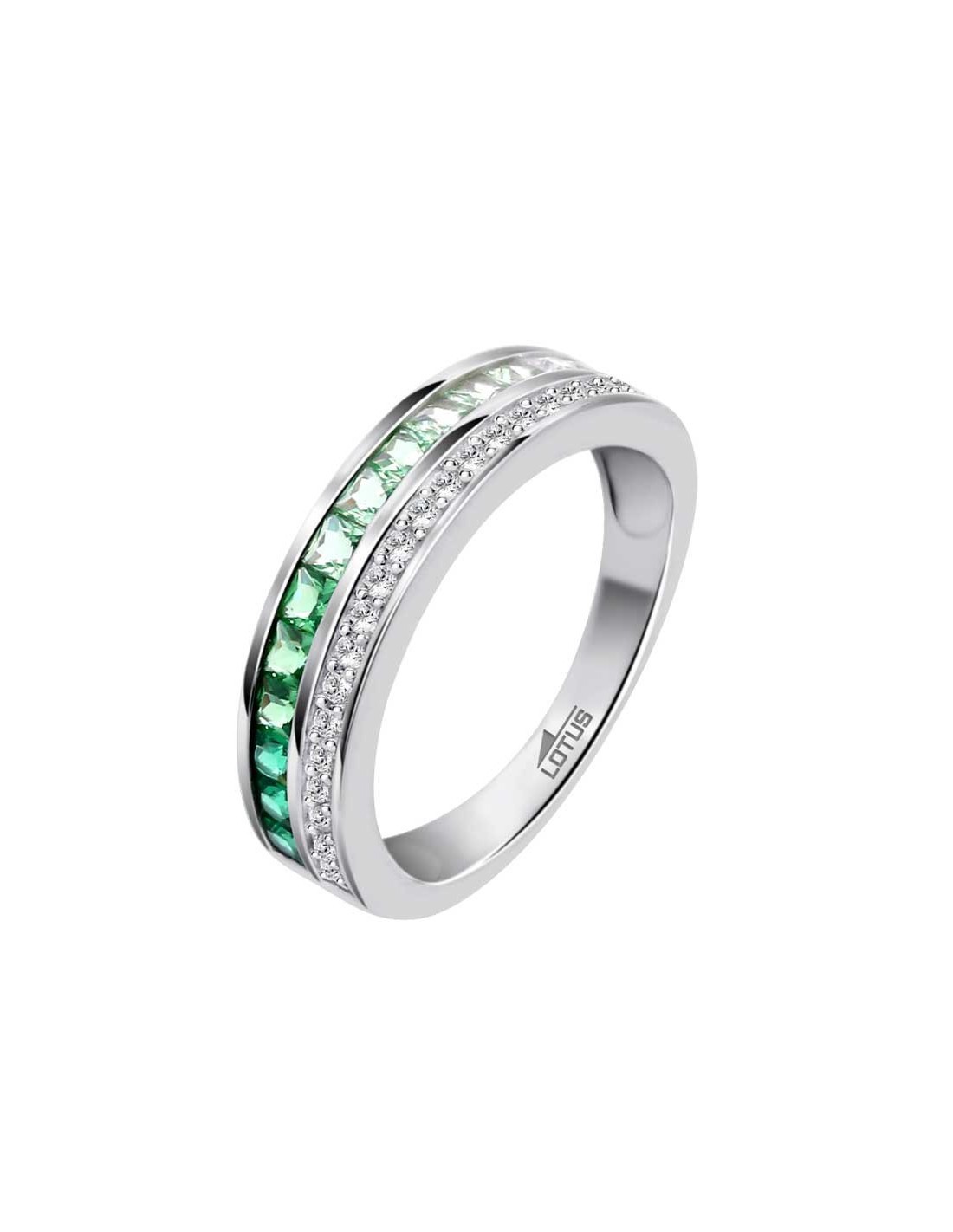 Anillo de mujer con circonitas en tonos verdes y blancas fabricado en plata 925 marca Lotus Silver. Colección Pure Essential. Talla nº14. Se incluye estuche oficial Lotus Silver.