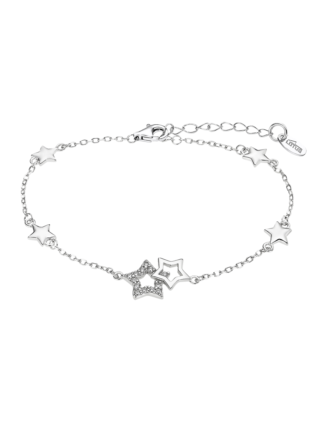 Pulsera de mujer fabricada en plata 925 marca Lotus Silver. Pulsera con estrellas con circonitas. Tamaño ajustable de 16 a 19 cm. Colección Trendy. Se incluye estuche y certificado oficial Lotus Silver.