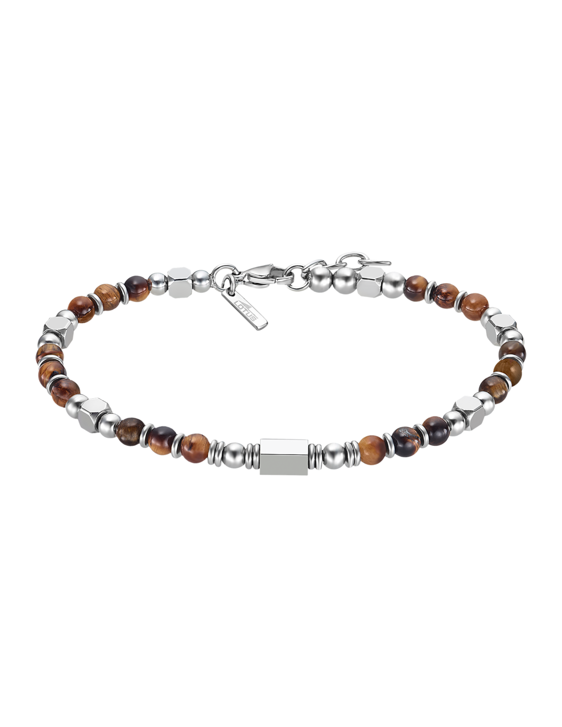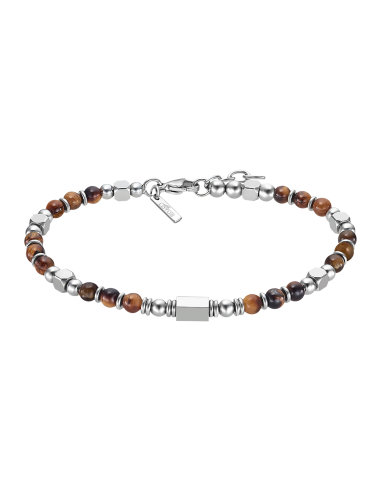 Pulsera fabricada en acero inoxidable con bolas de material color marrón. Colección Urban Man.