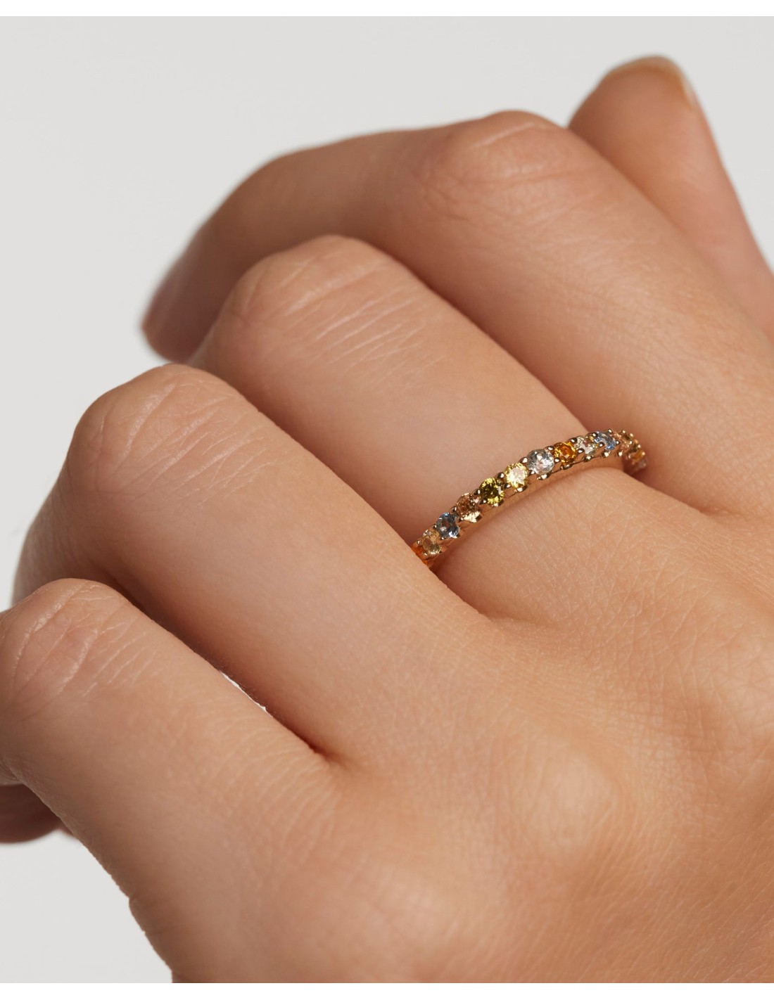 Anillo para mujer fabricado en plata 925 bañado en Oro 18k con circonitas de colores. Talla nº14. Referencia AN01-C07-14. Se incluye estuche y certificado oficial PDPAOLA.