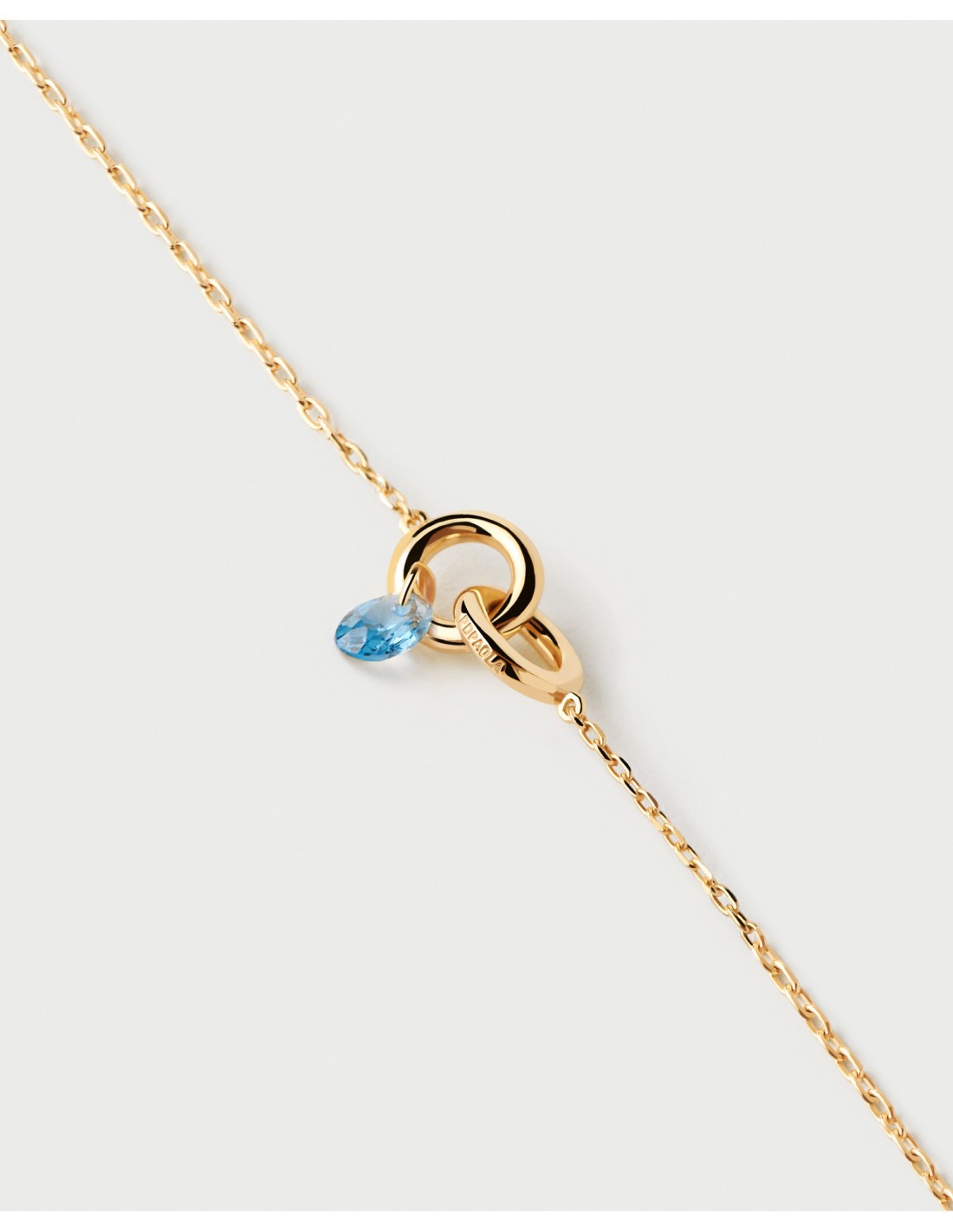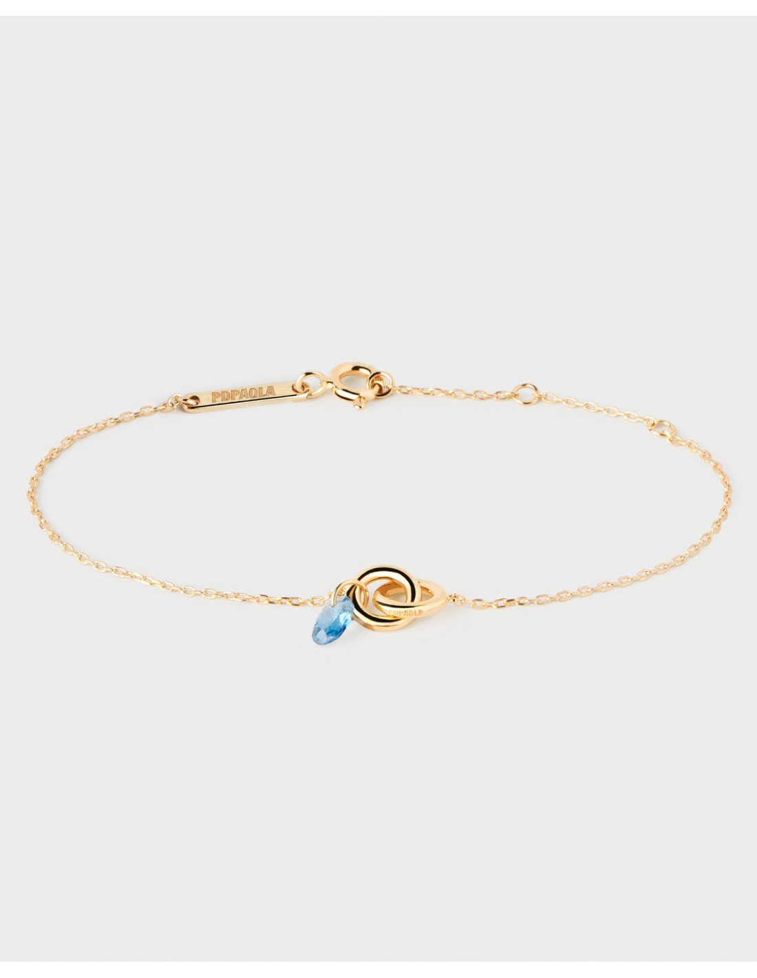 Pulsera para mujer fabricada en plata 925 bañada en Oro 18k PDPaola. Pulsera con circonita color azul cielo. La pulsera tiene un largo ajustable de 14 a 17cm. Se incluye estuche oficial PDPAOLA. Referencia PU01-774-U.