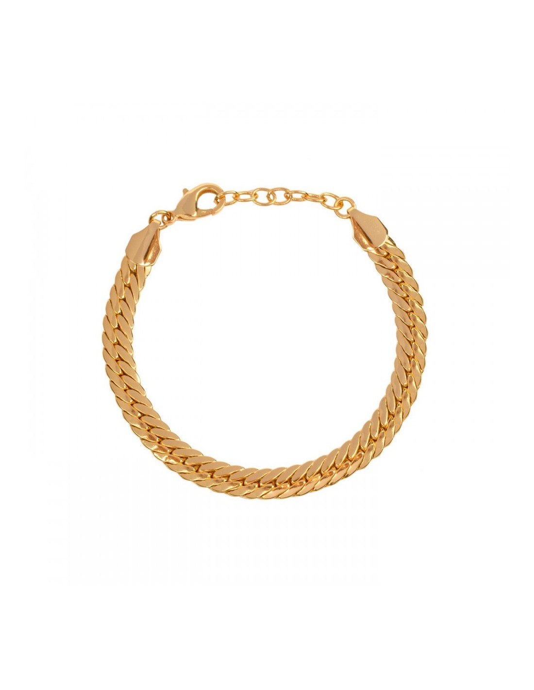 Pulsera de mujer de eslabones planos tipo barbada fabricada en metal bañado en oro de 18kt.