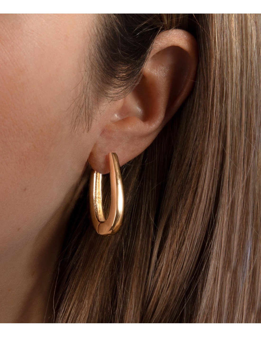 Pendientes de mujer tipo aro alargado. Fabricados en metal chapado en oro 18kt.