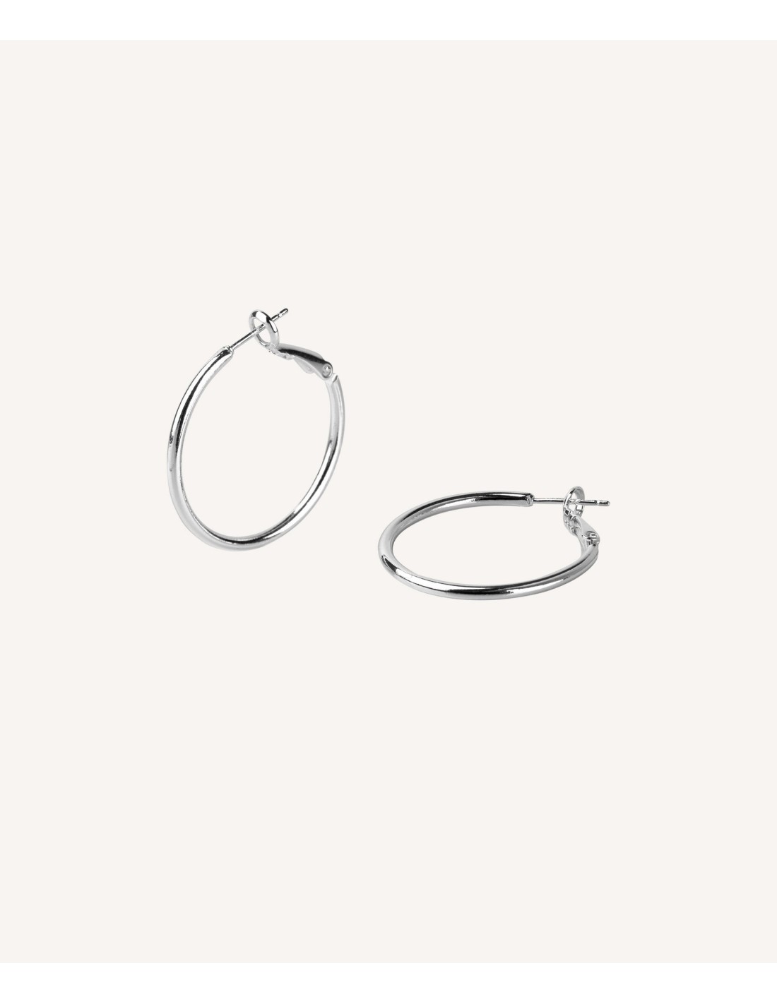Pendientes Vidal & Vidal para mujer con forma de aros con un diámetro de 30mm y 2mm de grosor. Están fabricados en metal hipoalergénico que no contiene Níquel. Chapados en plata. Con cierre tipo clip. Colección Essentials. Se incluye garantía y bolsa oficial Vidal & Vidal.