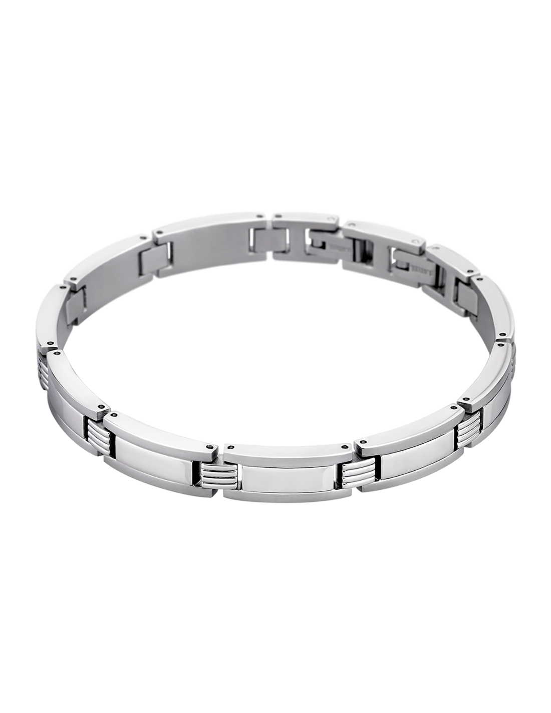 Pulsera fabricada en acero inoxidable color plateado con eslabones. Colección Men in Black.
