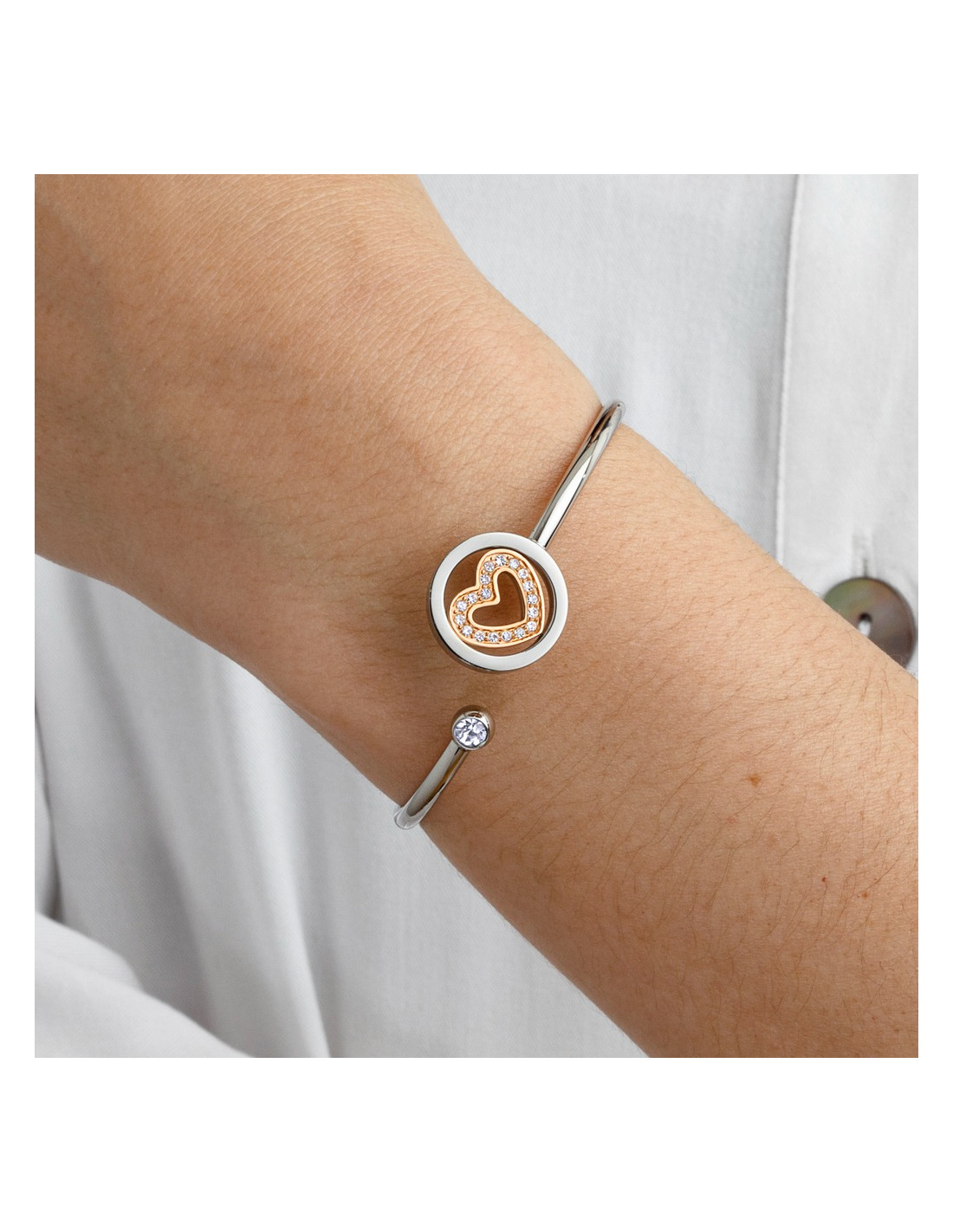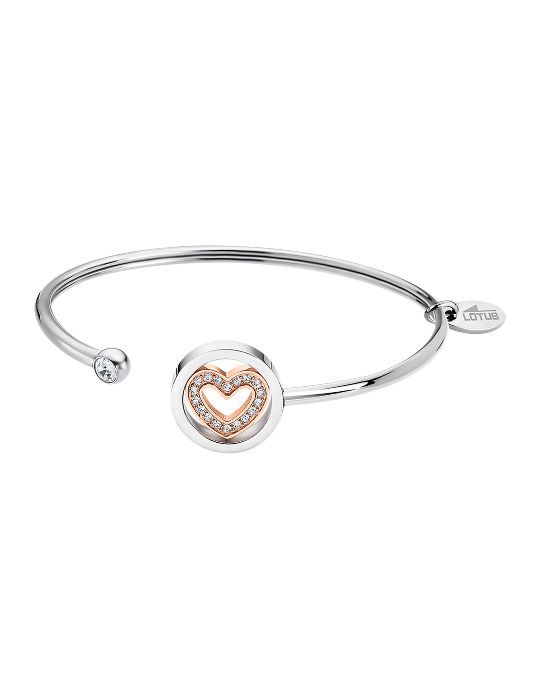 Fabricada en acero inoxidable referencia LS2182-2/2 marca Lotus Style con detalle de corazón color rosa con circonitas. Colección Woman´s Heart. Pulsera rígida de 6cm de diámetro. Se incluye estuche oficial Lotus Style.