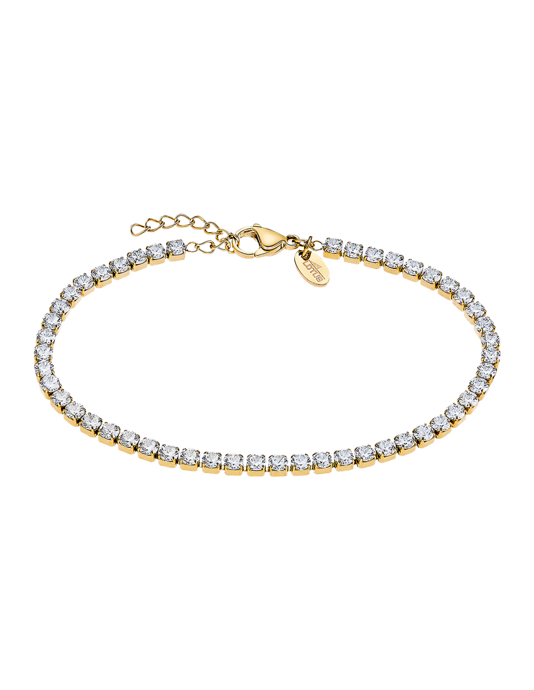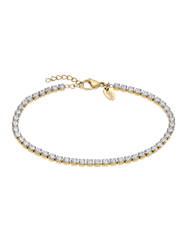 Fabricada en acero tipo rivière color dorado con circonitas blancas ref. LS2341-2/2 colección Urban Woman. La pulsera tiene un largo ajustable de 17 a 19 cm. Se incluye estuche oficial Lotus Style.