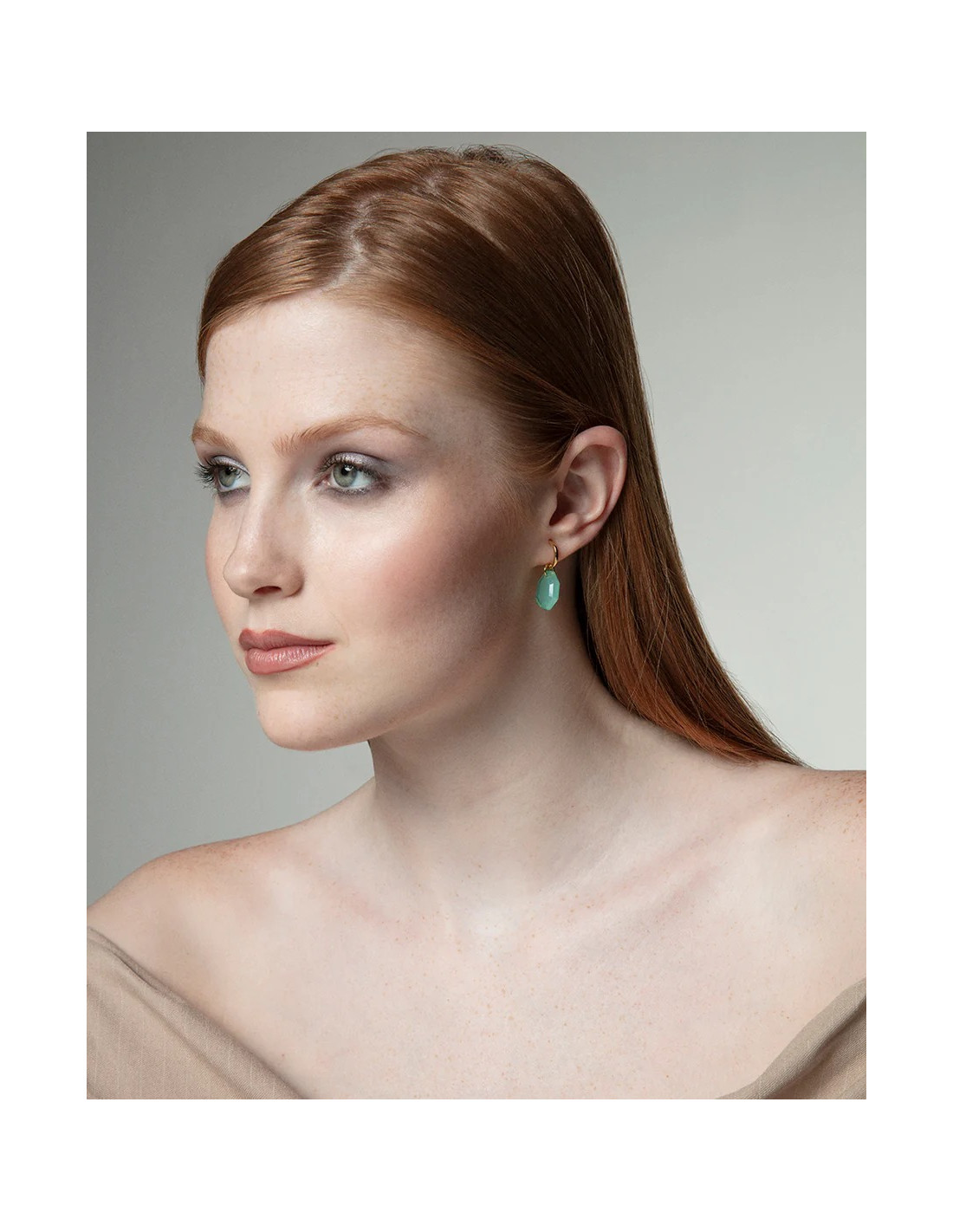 Pendientes fabricados en plata de ley 925 con colgante de cristal color verde agua.