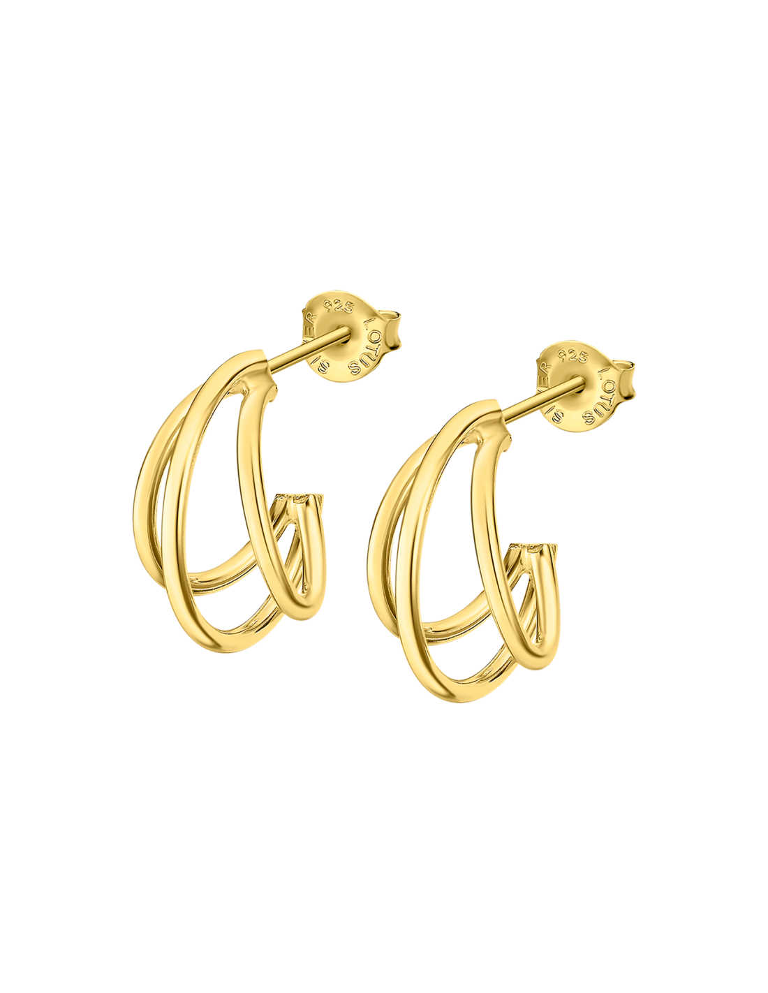 Pendientes de mujer fabricados en plata 925 chapada en oro marca Lotus Silver. Tamaño de 18mm de diámetro y cierre tipo tuerca a presión. Se incluye estuche y certificado oficial Lotus Silver.