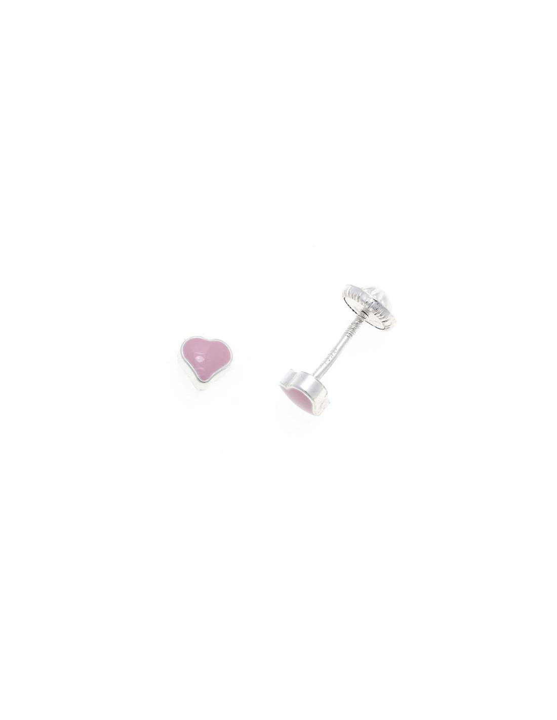 Pendientes niña de plata marca Salvatore Plata. Pendientes fabricados en plata de ley con tuerca a rosca, con corazón esmaltado en rosa. Ancho de 4mm. Referencia 173A0064. Se incluye caja oficial Salvatore Plata.