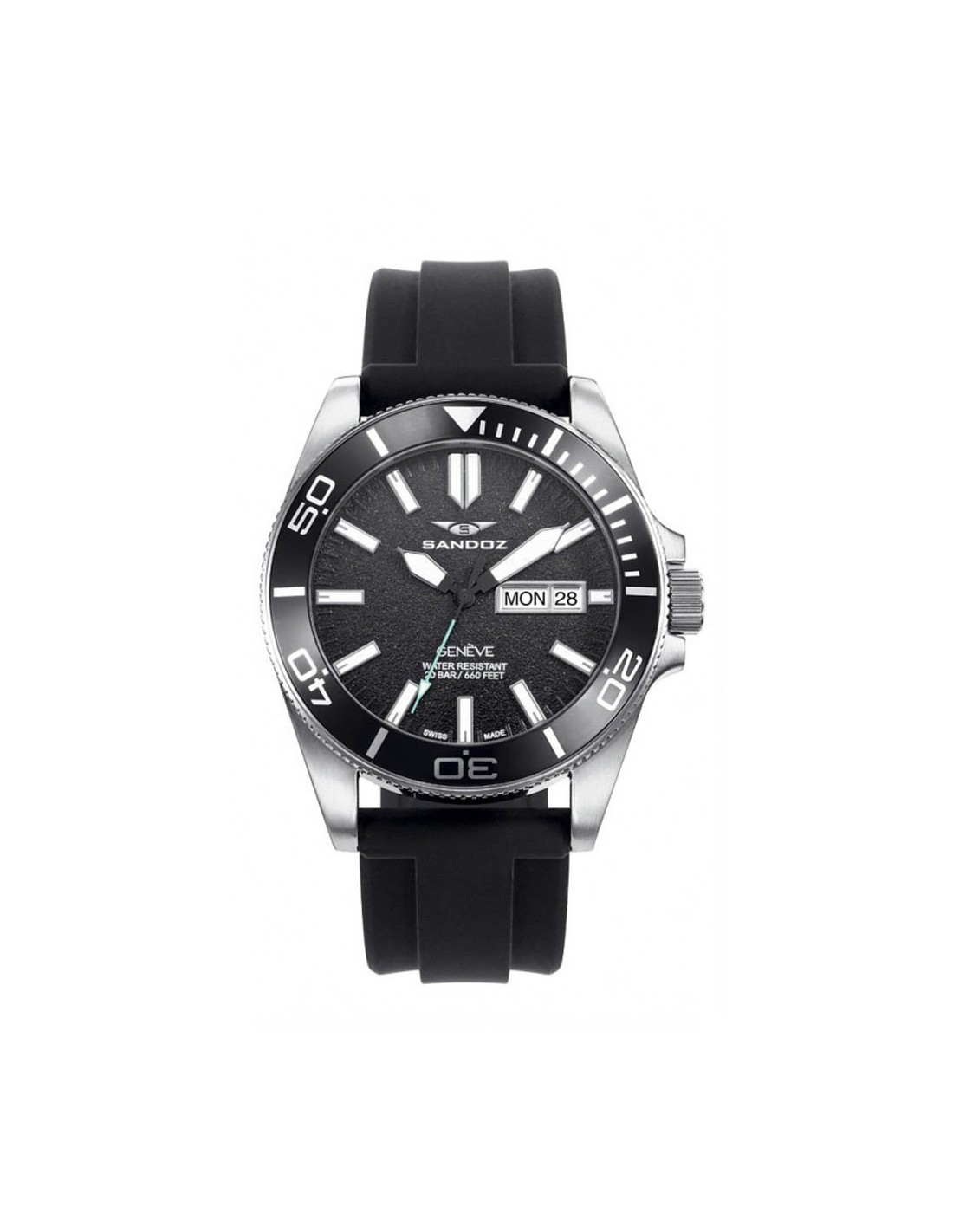 Reloj suizo para hombre fabricado en acero con correa de silicona y cristal zafiro marca Sandoz colección Diver. RELOJ SANDOZ HOMBRE 81451-57