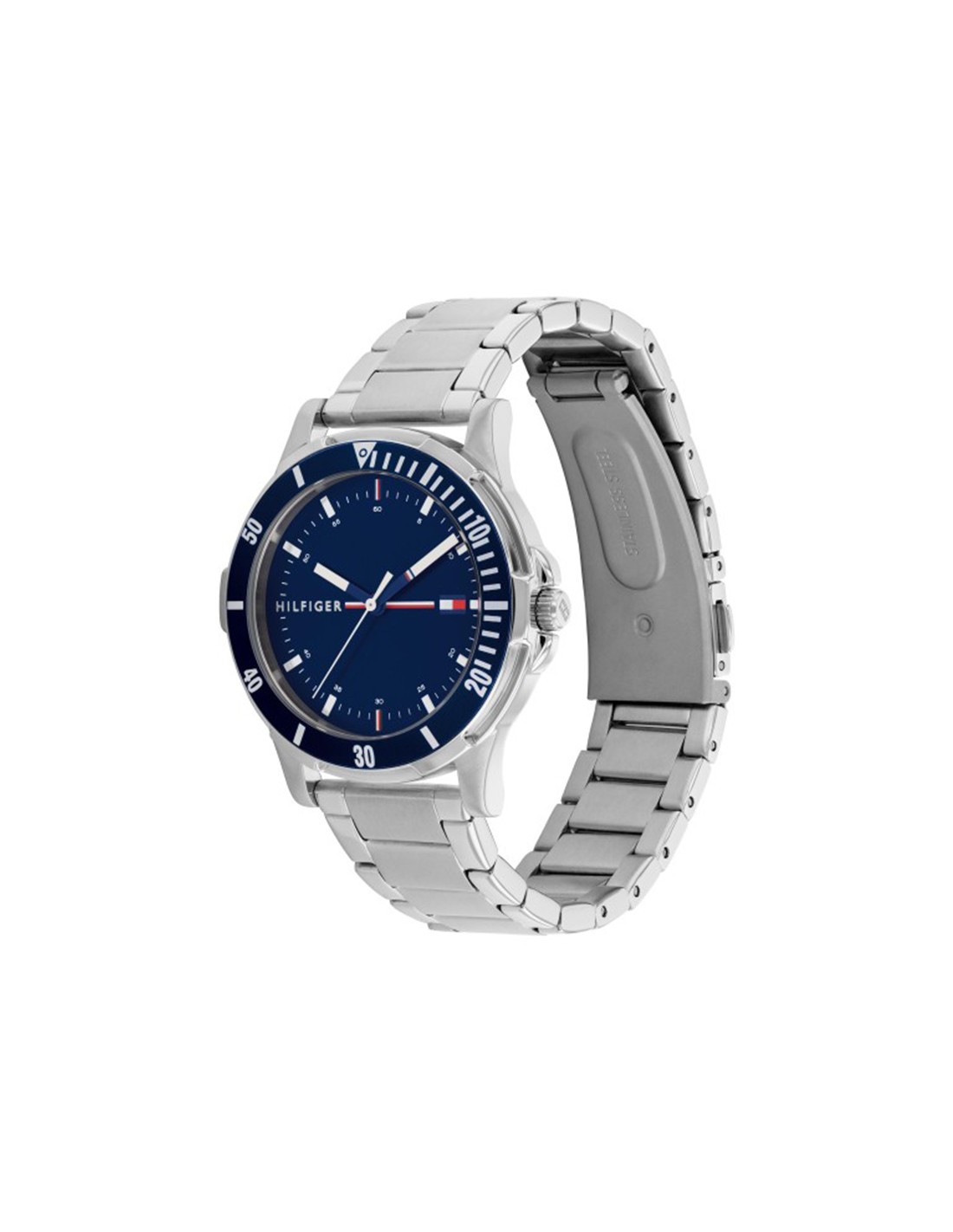 Reloj para niño fabricado en acero marca Tommy Hilfiger de comunión. Se trata de un reloj analógico con caja redonda y pulsera de acero inoxidable.