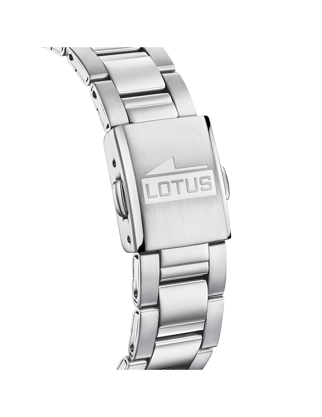 Se trata de un reloj analógico con caja redonda de acero inoxidable. La caja del reloj tiene un diámetro de 36 mm aproximadamente. Cristal mineral y movimiento de cuarzo. Pulsera de acero con cierre desplegable. Tiene una resistencia al agua de 50 metros (5ATM). Cuenta con la garantía oficial Lotus de 24 meses. Se entrega con su caja oficial.