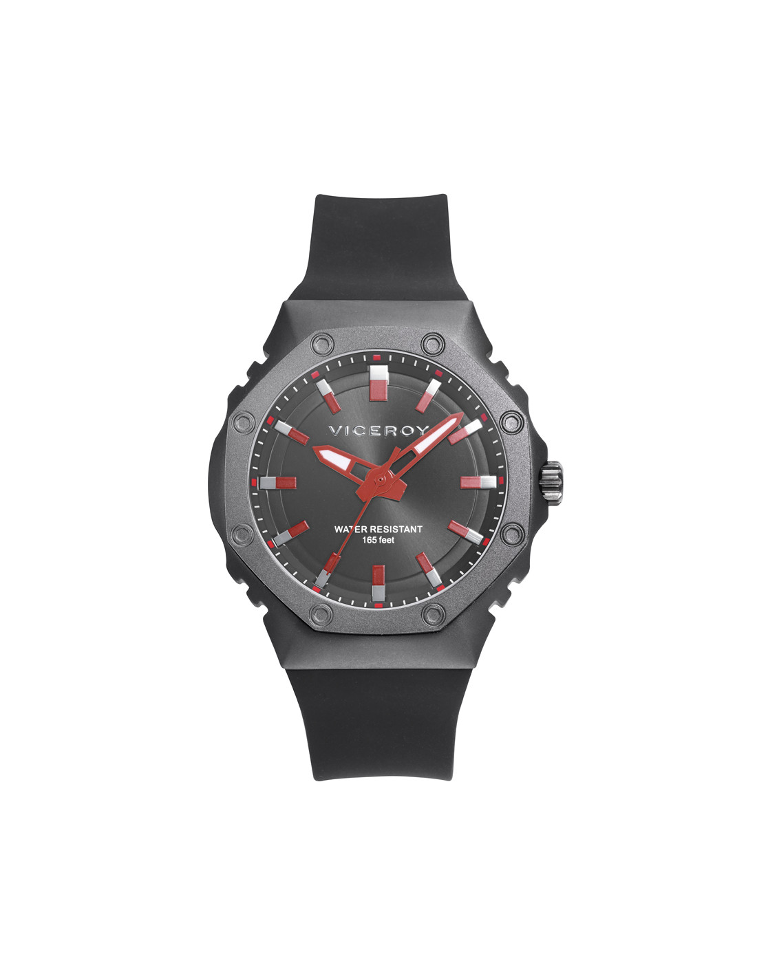 Se trata de un reloj analógico con caja redonda de aluminio color gris. La caja del reloj tiene un diámetro de 44,5 mm. Cristal mineral y movimiento de cuarzo. Correa de silicona negra con cierre tipo hebilla. Tiene una resistencia al agua de 50 metros (5ATM). Cuenta con la garantía oficial Viceroy de 24 meses. Se entrega con su caja oficial.