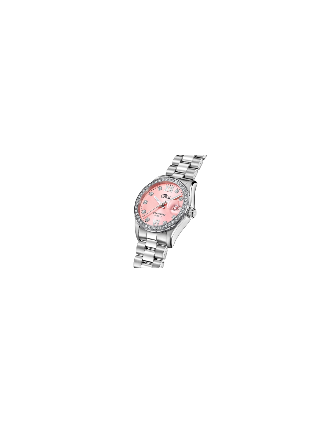 Reloj para mujer fabricado en acero marca Lotus colección Freedom. Se trata de un reloj analógico con esfera rosa y bisel con circonitas.