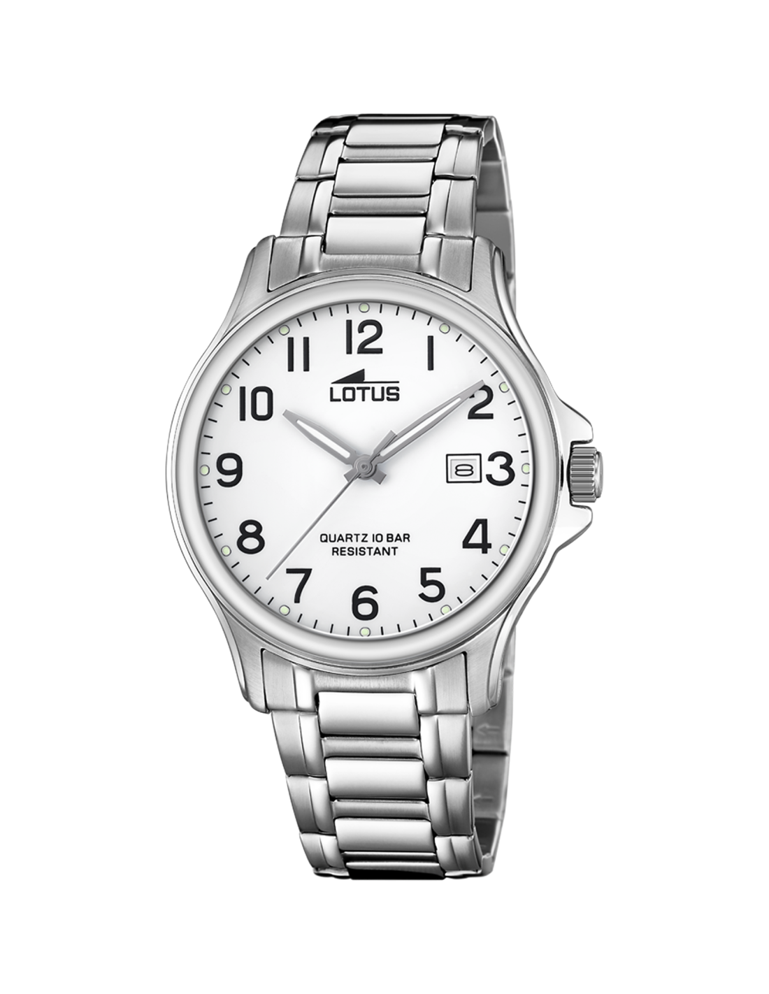 La caja del reloj tiene un diámetro de 39 mm aproximadamente. Cristal mineral y movimiento de cuarzo. Pulsera de acero con broche desplegable. Tiene una resistencia al agua de 100 metros (10ATM). Cuenta con la garantía oficial Lotus de 24 meses. Se entrega con su caja oficial.