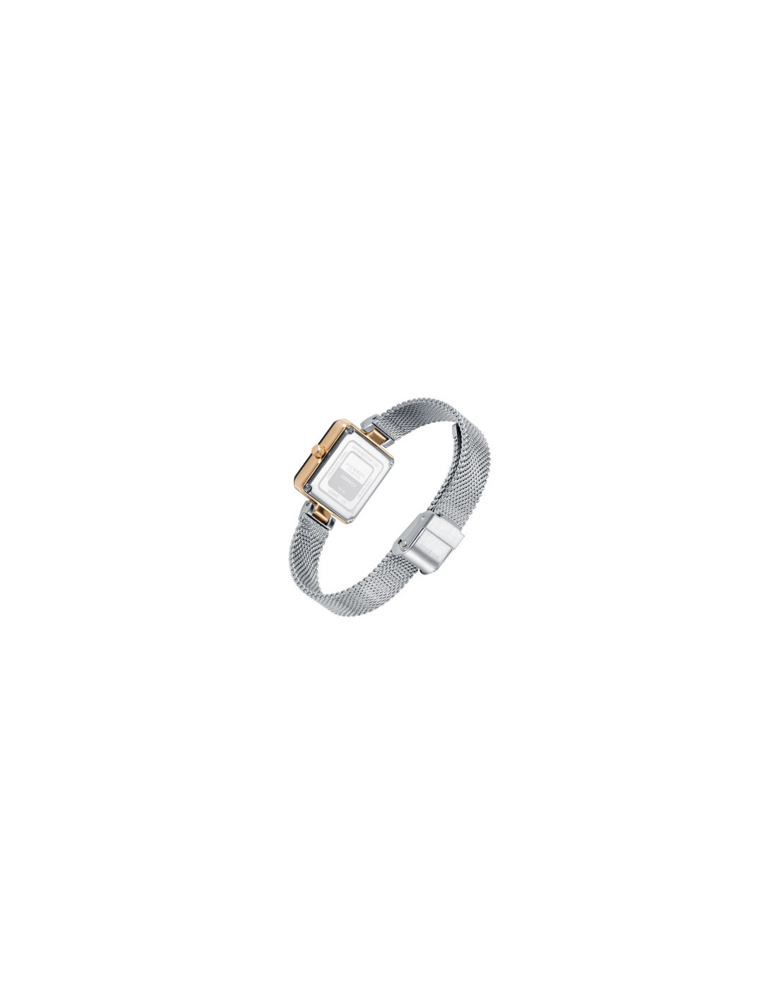 Reloj de mujer analógico con movimiento de cuarzo y pulsera de malla de acero plateada. Colección Cerámica.