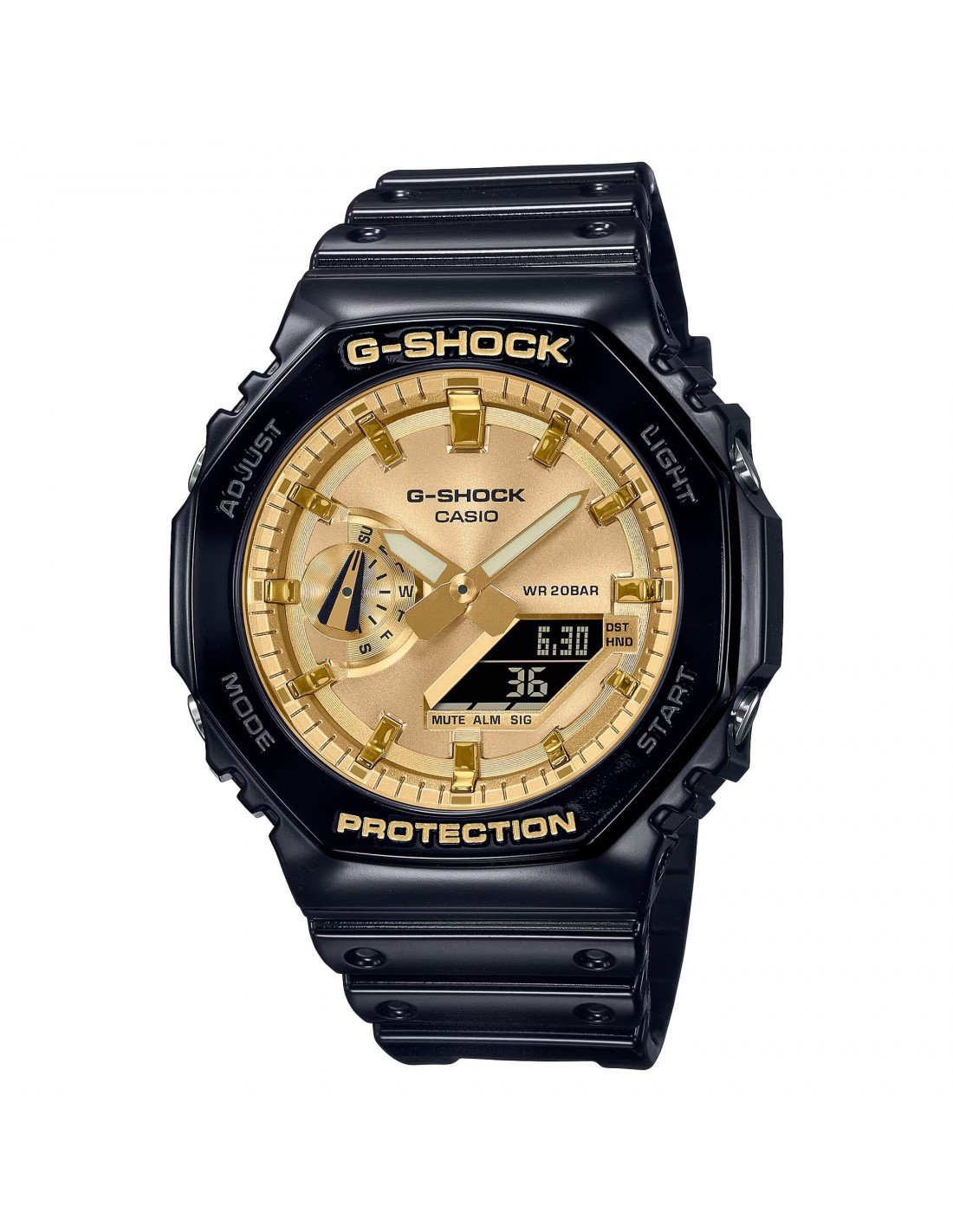 Reloj de hombre analógico y digital con movimiento de cuarzo. Serie GA-2100 con esfera color dorado.