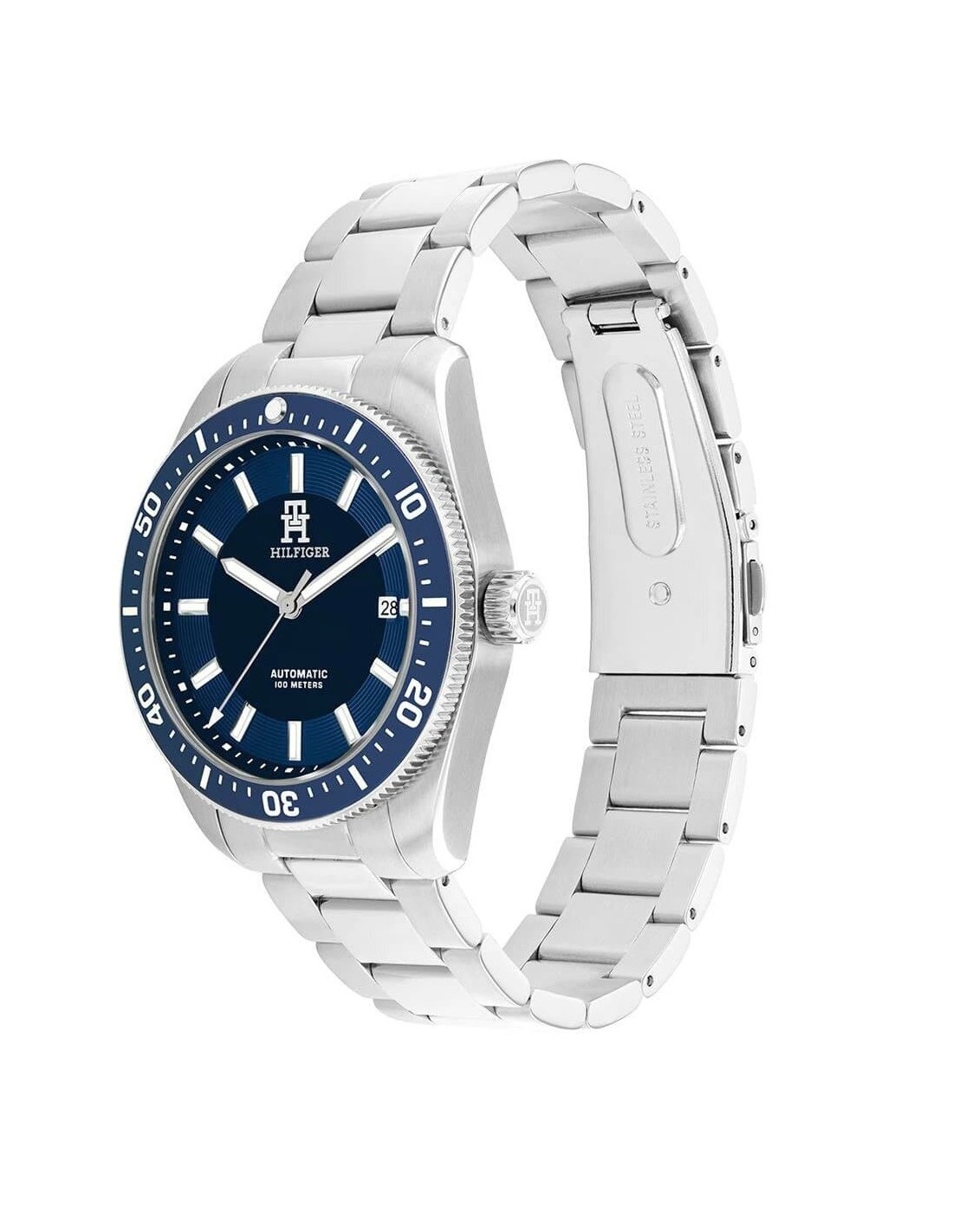 Reloj para hombre fabricado en acero marca Tommy Hilfiger colección TH85. Esfera y bisel azul. Movimiento automático.