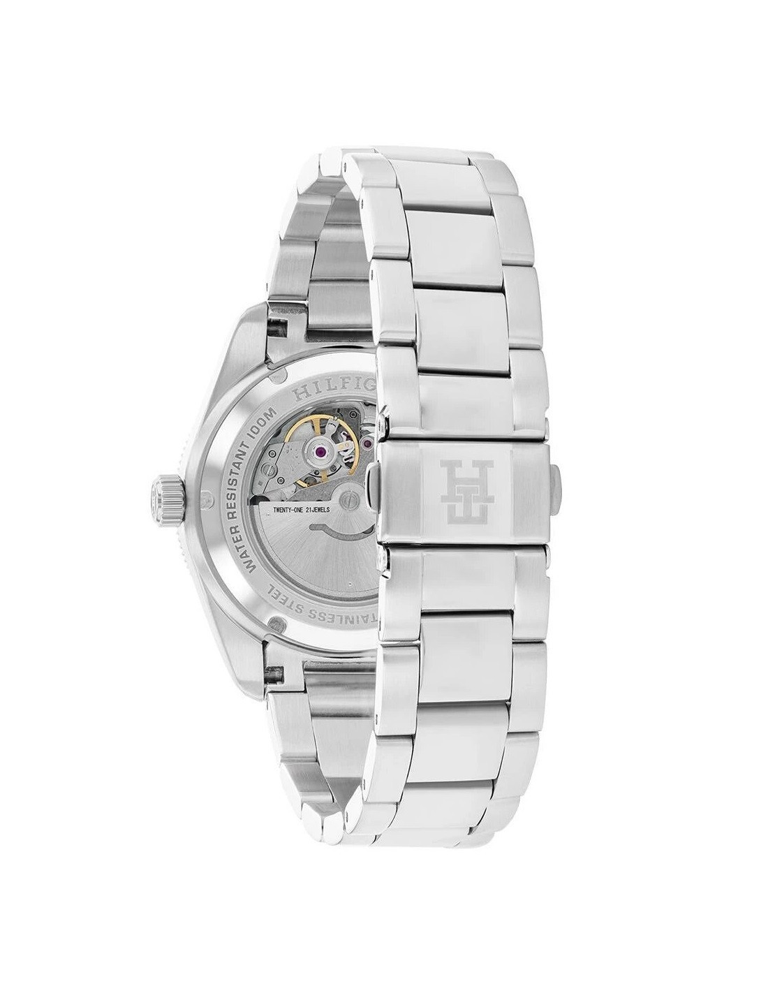 Se trata de un reloj analógico con caja redonda de acero inoxidable. La caja del reloj tiene un diámetro de 40mm aproximadamente. Cristal mineral y movimiento de automático. Pulsera de acero con cierre tipo desplegable. Tiene una resistencia al agua de 100m (10ATM). Cuenta con la garantía oficial Tommy Hilfiger de 24 meses. Se entrega con su caja oficial.