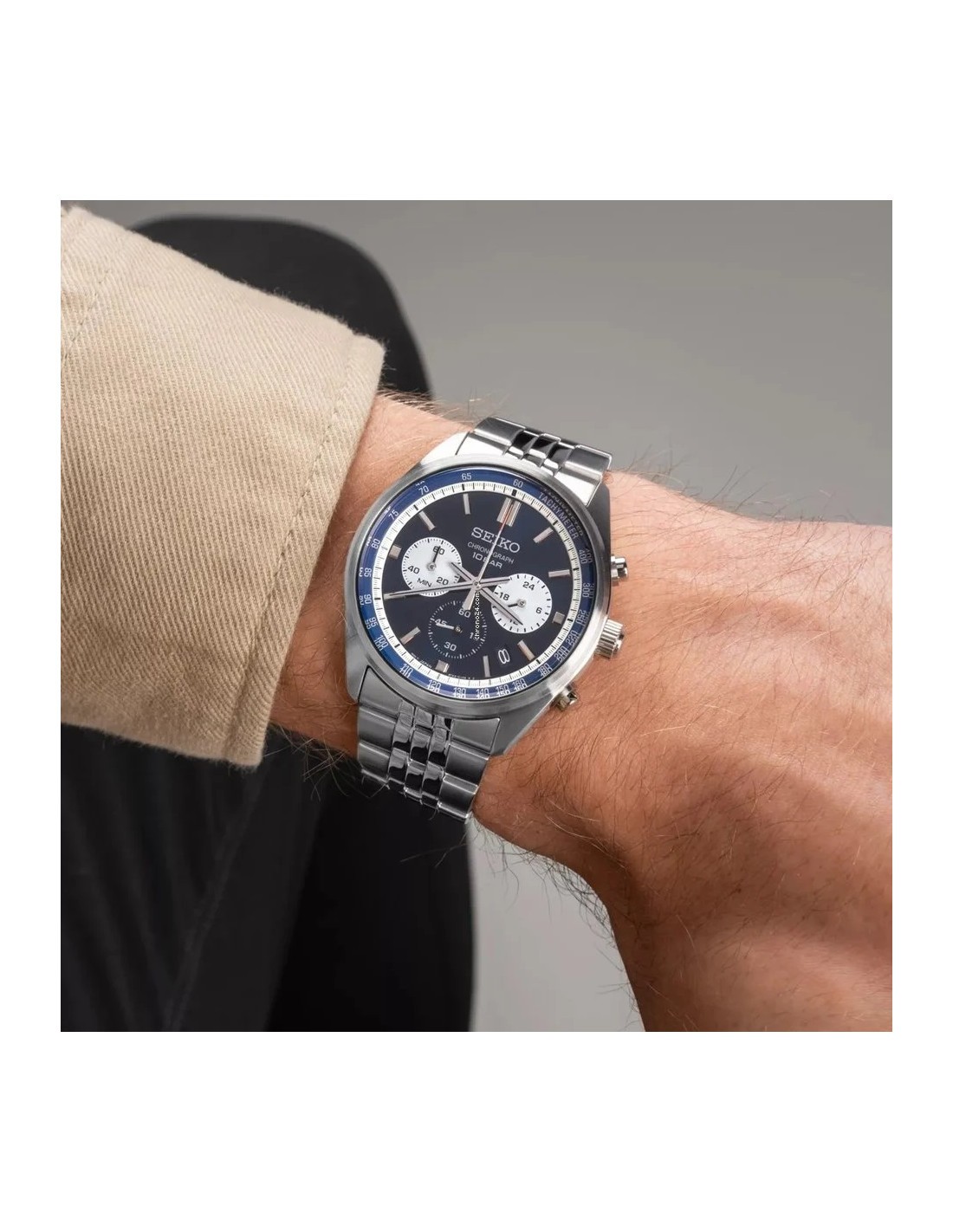 Reloj para hombre fabricado en acero marca Seiko colección Neo Sports. Se trata de un reloj analógico chrono con caja redonda de acero inoxidable.