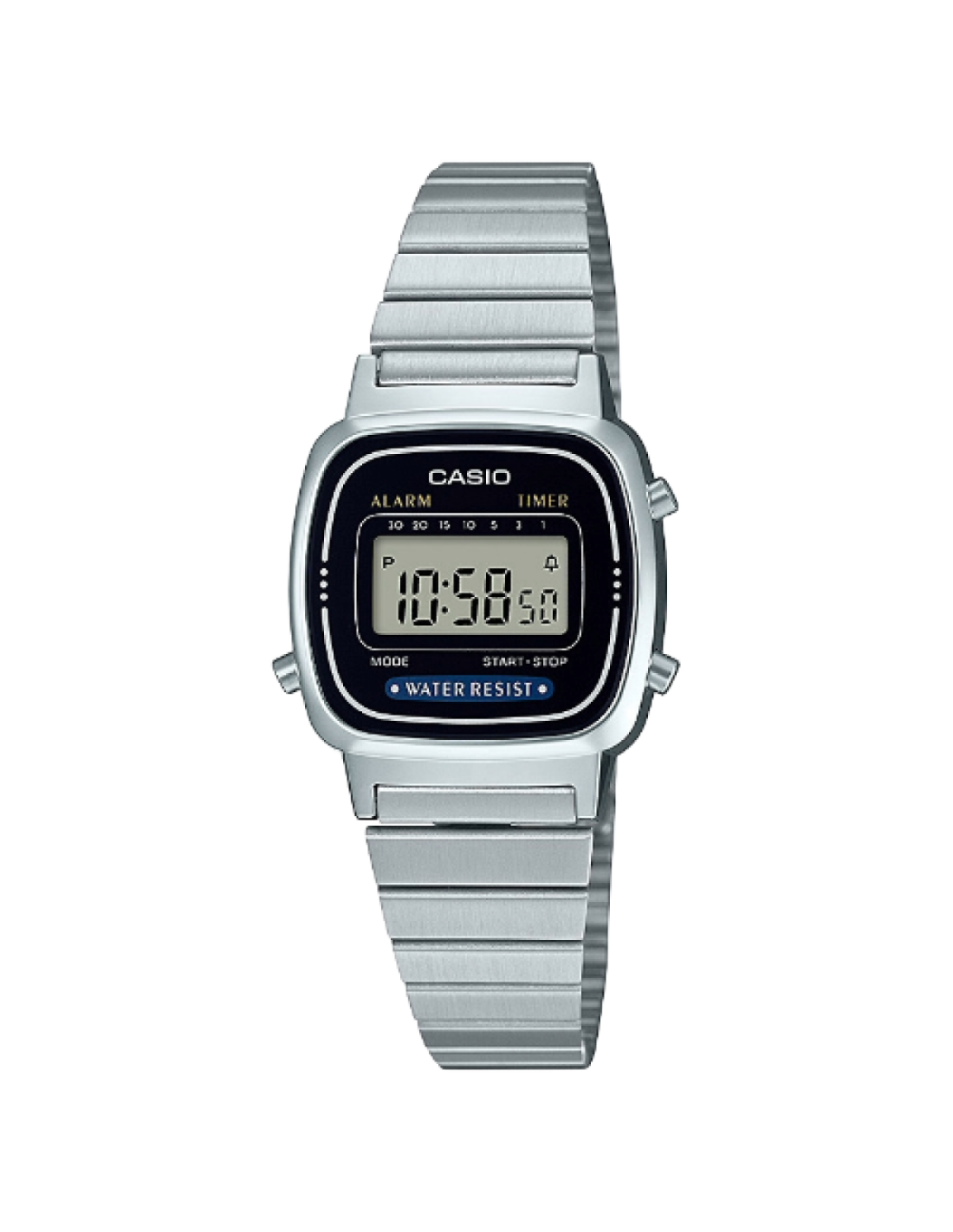 Reloj digital marca Casio colección Vintage. Modelo LA670WEA-1EF. Mini Collection. Se trata de un reloj digital con caja cuadrada fabricada en resina cromada.