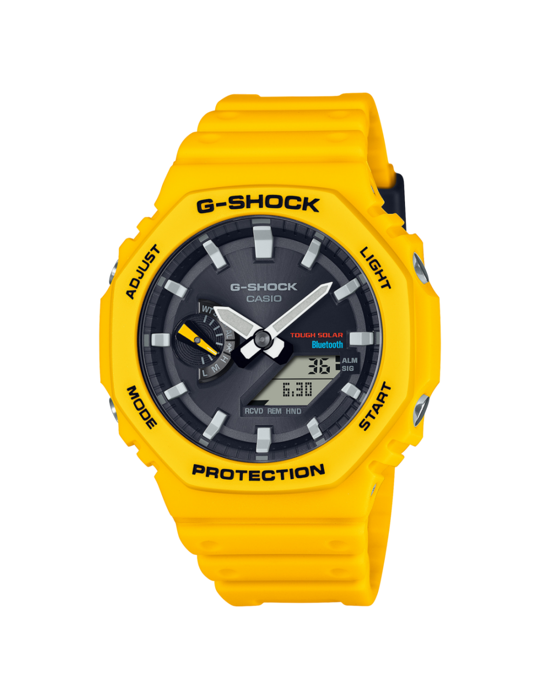 Reloj para hombre fabricado en resina marca Casio colección G-SHOCK. Reloj Estándar serie 2100. Reloj Tough Solar (alimentado con energía solar) con conexión Bluetooth con función de conectividad de aplicaciones.
