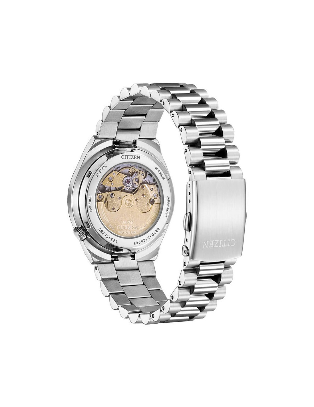 La caja del reloj tiene un diámetro de 40mm. Esfera color negro con calendario. Cristal zafiro y movimiento automático. Pulsera de acero color plateado con cierre desplegable. Tiene una resistencia al agua de 50 metros (5ATM). Cuenta con la garantía oficial Citizen de 3 años. Se entrega con su caja oficial.